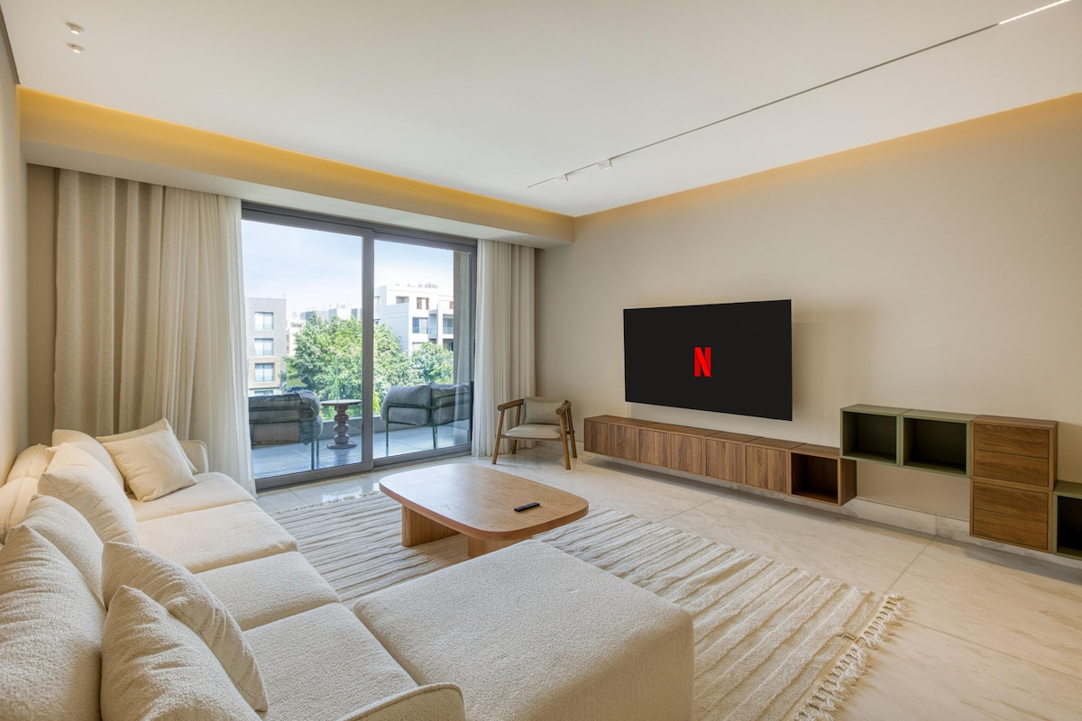Experience luxury living in this exquisite three-bedroom apartment, Each of the three rooms has a view of the pyramids and the new Egyptian Museum. Two of the three rooms have a Jacuzzi., creating a seamless blend of comfort and grandeur. Perfectly situated, this apartment is a true oasis for those seeking an extraordinary lifestyle.There is also a reception with a corner, a dining room, and a balcony overlooking the pyramids and the Grand Egyptian Museum.
