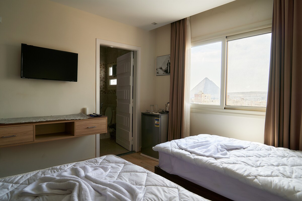 (!!No couples are allowed without marriage certificate) Kick back and relax in this calm, stylish space. Fully equipped studio and spacious outdoor terrace with totally private entrance and open view in a safe and private compound Green areas all around and great location near sphinx airport & pyramids also easy access to everything you may need