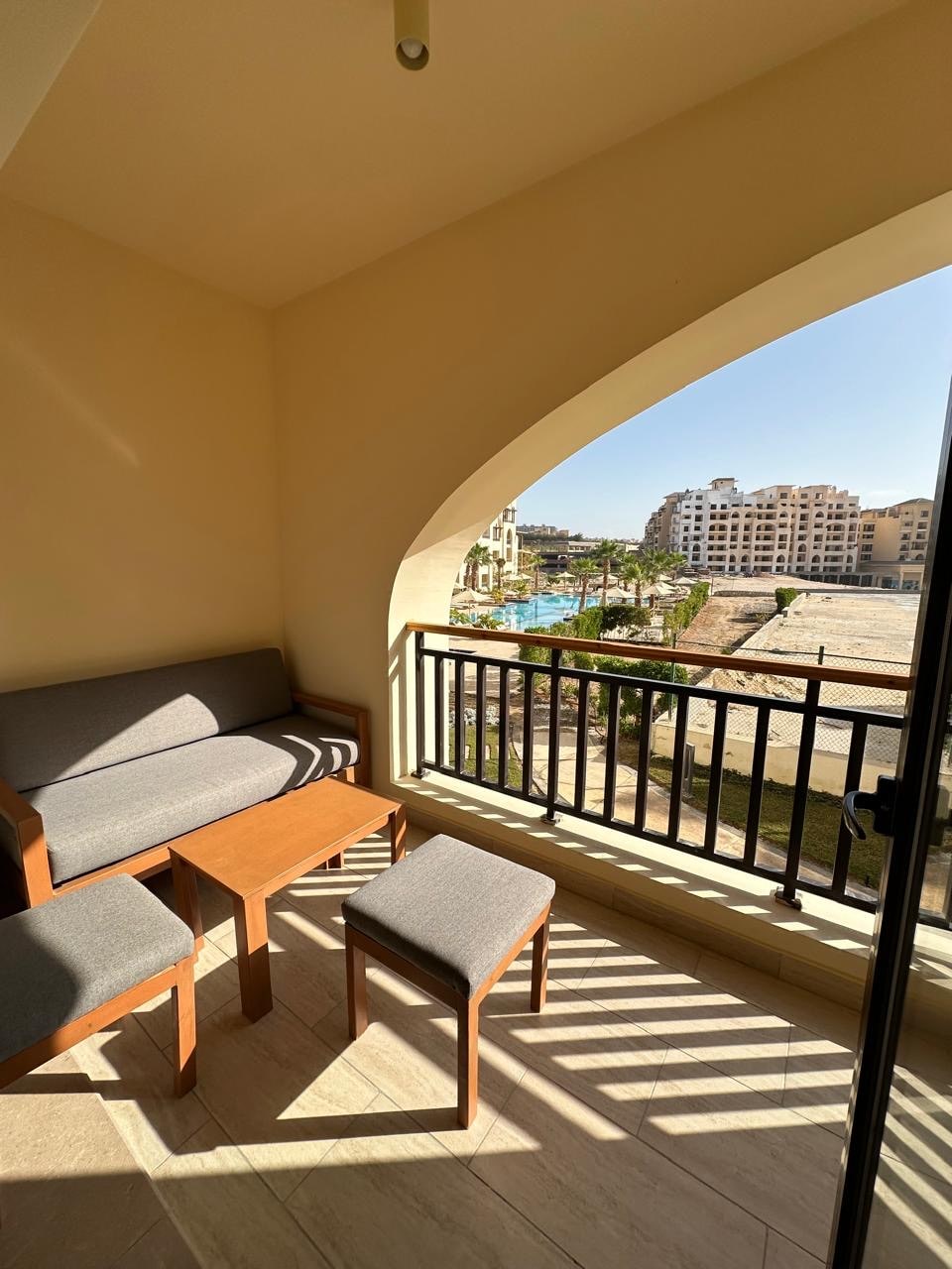 A private room in Harem hotel, Domina Coral Bay resort , Sharm el sheikh. Two beds, living area, dressing room, huge bathroom and a balcony that looks over beautiful greenery and Red Sea view. The room has a hairdryer, fridge, microwave, safety box, kettle and TV. Guests bring their own soap, shampoo & shower gel. No WIFI in the room. 10 minutes from the airport. 5 minutes from Na’ama bay. 15 minutes from Old Market. No meals included.