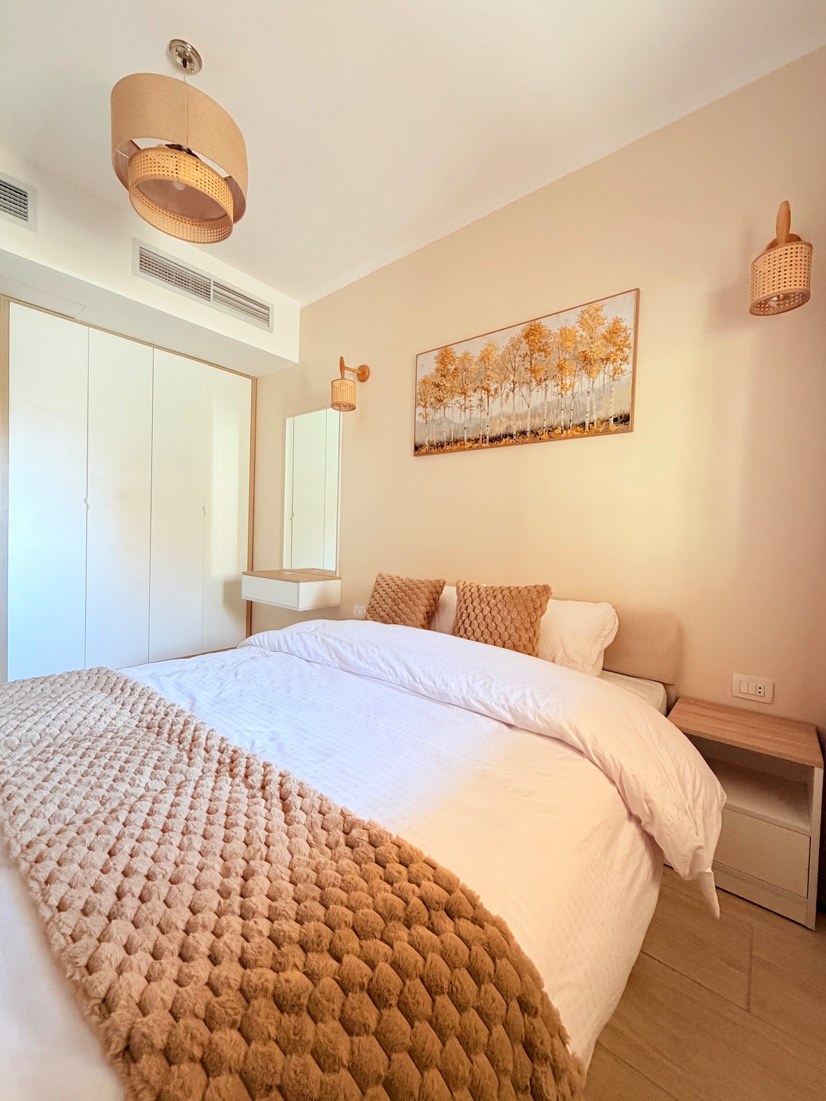This stunning 3-bedroom ground-floor apartment combines modern design with cozy living. It features an open layout, soft neutral tones, and plenty of natural light. With a private pool and spacious garden, it offers the perfect mix of comfort and convenience. **Please note there is construction in this building on weekdays from 9am to 4:30pm