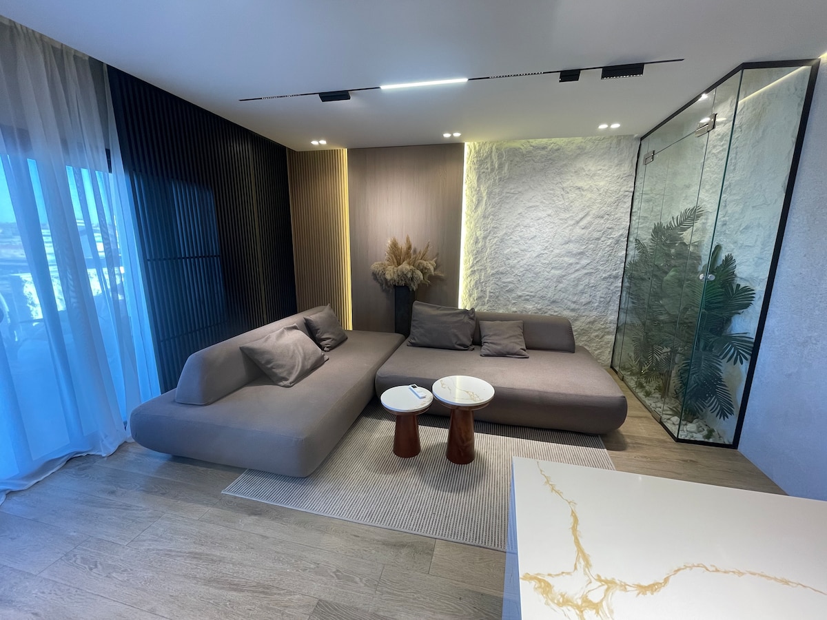 The front beach fully air-conditioned apartment, located in a vibrant tourist area, offers stunning, open views of the sea from all its rooms and the spacious reception area. It features three bedrooms, two bath rooms, and an equipped kitchen. The apartment is have all essential appliances that ensure a pleasant and comfortable stay blends privacy, relaxation, and city energy. Double-glazed windows were installed to minimize external noise, which reflects the area lively charm.