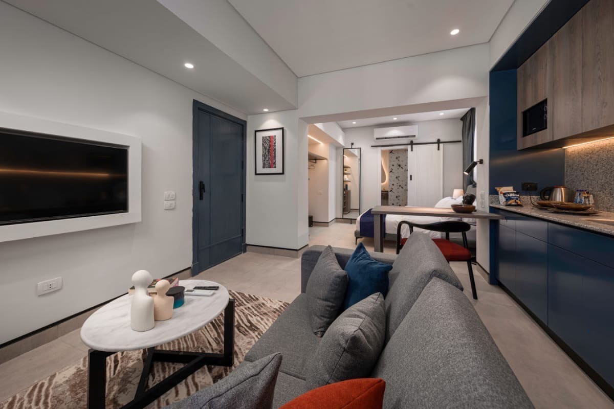 Escape the hustle and bustle of the city and unwind in this tranquil 90-square-meter open-layout studio. Enjoy spacious living, a comfortable king-sized bed, and an unmatched fully equipped kitchen. Location: Just a 5-minute drive from AUC, The Spot Mall, and Point 90 Mall, 25 Minutes from Cairo Airport Message me for more details or book your stay instantly. I can help you with planning your trip, recommending authentic Egyptian restaurants, or guiding you to the hidden gems of the city.