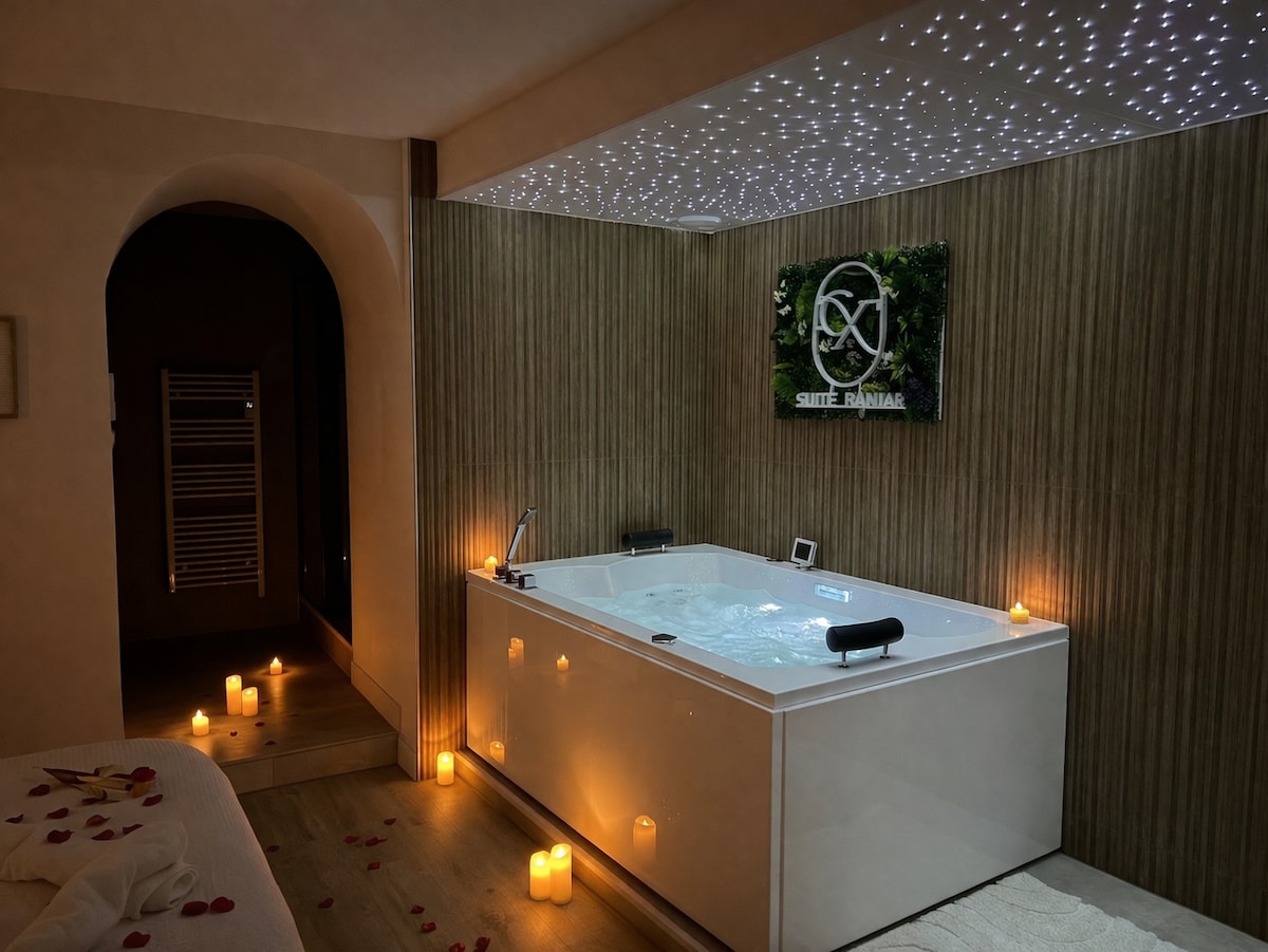 Logement Haut de Gamme avec Balnéo, Sauna, sofa tantra, porte secrète révèle un spa privatif avec sauna & table de massage. Offrez-vous une parenthèse de détente dans ce magnifique logement inspiré de Bali de 66 m² pour deux personnes. Tout confort : • Suite avec lit King Size (180x200), literie haut de gamme • Balnéo double avec ciel étoilé • Pièce secrète avec table de massage & Sauna • Salon avec cheminée à vapeur et télé connectée • Salle de bain avec une double douche • Fauteuil tantra
