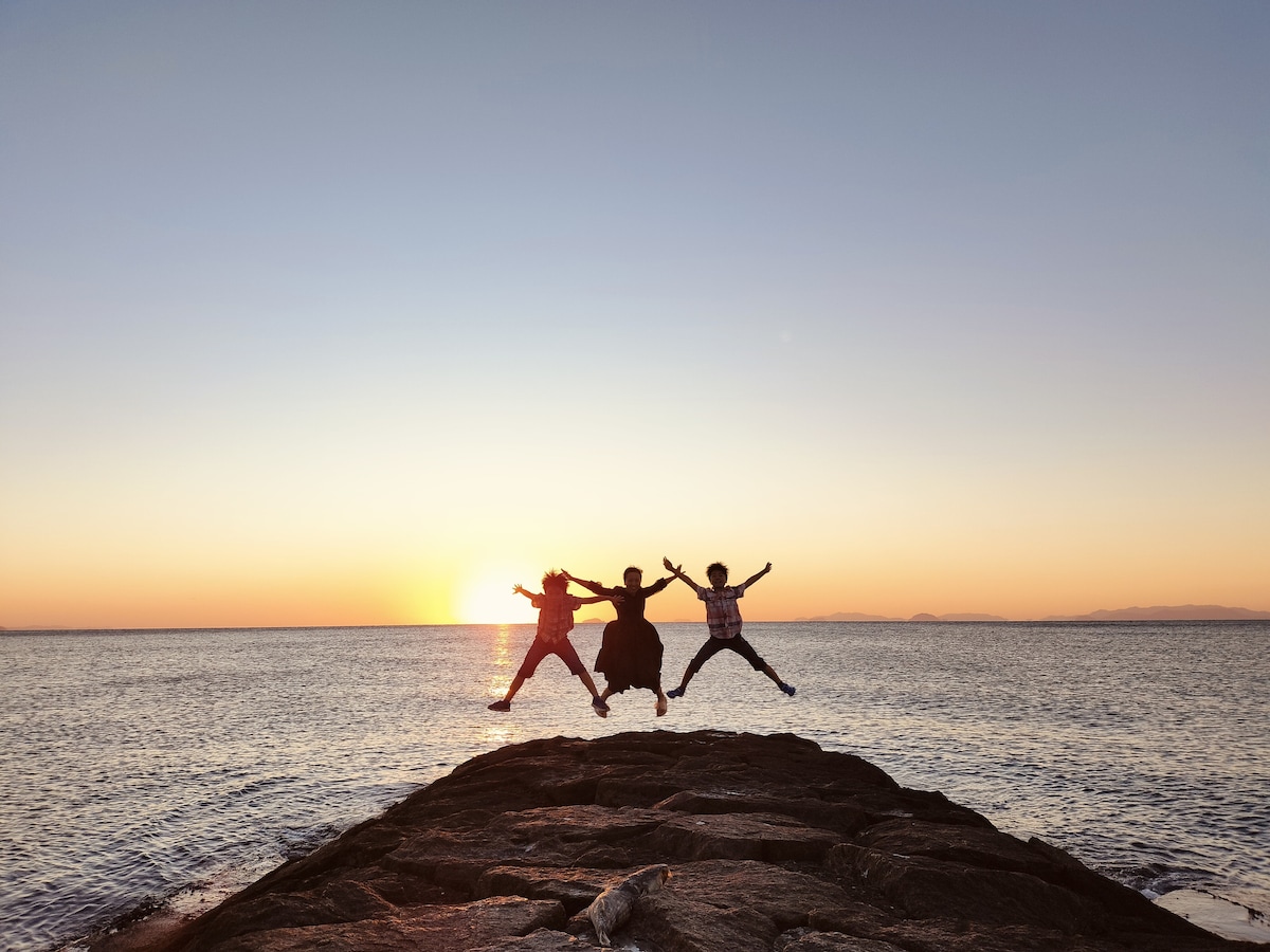 大人も子供も楽しめる海辺の貸切一軒家リゾート メインルーム~umi~ 伝統工法の古民家を大改装した3LDK。キッチンリビングダイニングに加え、ベッドルーム、和室、洋室と個室が3部屋あります。 ※別リスティングで5LDK全棟貸しプランもあり 目の前には漁港の風景が広がり、ほぼプライベートの砂浜まで徒歩1分。 ゆったりくつろげる和モダン空間や屋外テラスでリゾート気分を満喫。お子様は隠れテーマの忍者屋敷の遊具や美しい海辺で五感を使って遊びまわる。上って下りて回って消えて!? 海音に一歩足を踏み入れた瞬間からわくわくが止まりません。 瀬戸内海に続く漁港を一望できるウッドデッキ。青い海、広い空、美しい夕焼け、満点の星空、、時間とともに移り行く景色も堪能してみてください。 海水浴や釣り、生き物探しなどの海辺遊びに加え、ボードゲームや玩具、プロジェクターなど館内設備も充実しているため、季節や天候にかかわらず老若男女問わずバケーションを楽しめます! 道後温泉、しまなみまで車で約30分なので愛媛観光の拠点にも。 海音を満喫するには一泊だけでは物足りません。ぜひ連泊を検討してみてくださいね!