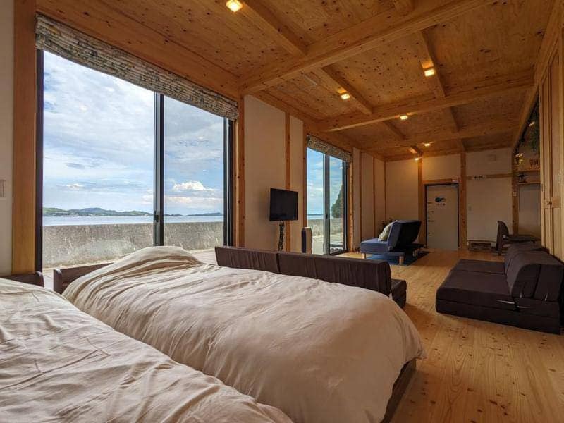 Welcome to Incense Beachfront Villa! Our villa boasts a lawn garden, a calm blue sea, and a stunning view of Shimanami Kaido bridges connecting islands. All rooms have ocean views, ensuring a relaxing and unforgettable stay. Whether you want to unwind or engage in various activities such as sauna, cycling and swimming, we've got you covered. We have a home theater with a 110-inch screen. If you're looking for a unique experience, you can take advantage of sauna with sea view.
