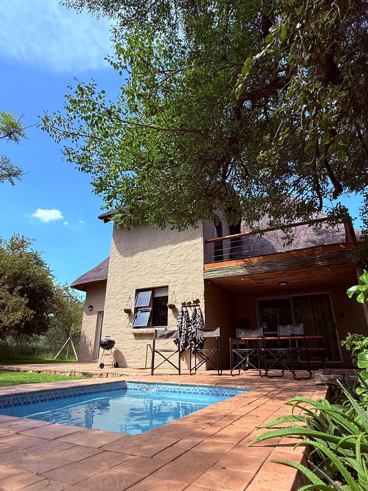 SOLAR, no load shedding or power outages. During load shedding, all lights work, Wifi, ceiling fan and fridge, the stove is gas & the geyser is gas. Washed with the warmth and colour of the afternoon sun and in true African style, this luxury self catering cottage over looks your own private pool and the amazing bushveld. Hoedspruit Wildlife Estate is situated in the small quaint town of Hoedspruit in Limpopo South Africa. PLEASE NOTE - NO PARTIES or music is allowed on the Wildlife Estate.