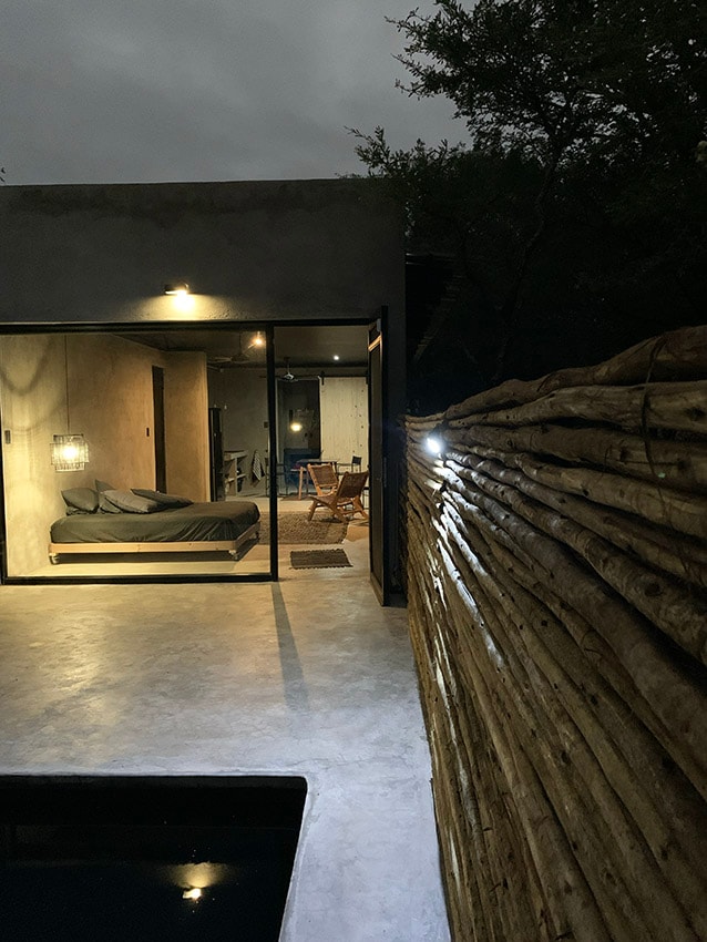 Completed in 2023, this little bush house is a very special open-plan, self catering space, set in a wildlife sanctuary approximately 14kms from the entrance to Kruger. It's a little bit of luxury with a 3mx3m 'deep enough to jump in' splash pool. Relax on the elevated patio surrounded by trees or sit inside with the huge sliding door open and watch the wild animals that visit - kudu, zebra, giraffe, impala, warthog, to name a few, roam freely. Or, just come for a romantic getaway!