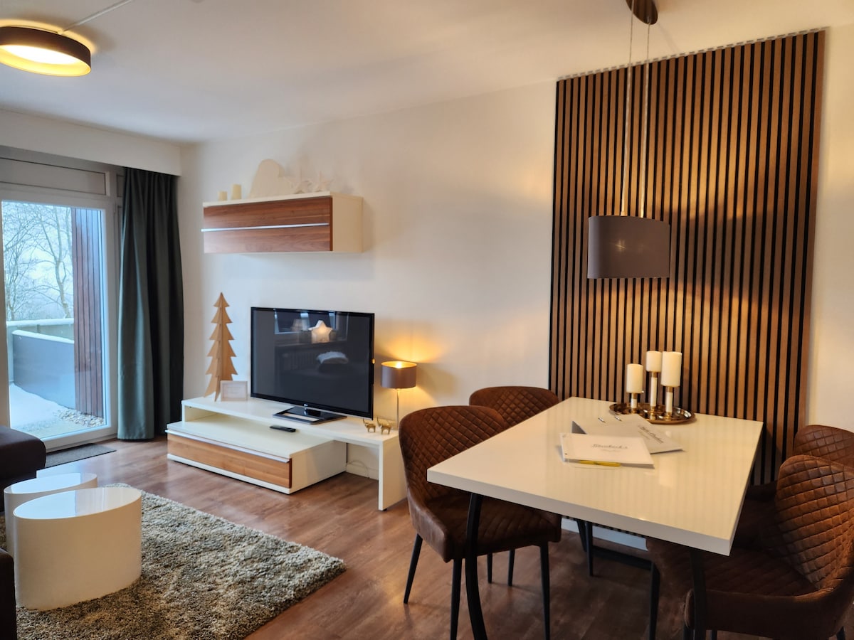 Das Studio-Apartment für 2 Personen mit Balkon im 1. Stock bietet alles, was es für eine entspannte Auszeit braucht. Es liegt direkt gegenüber des Kur-Parks mit dem Schmelzteich. Im Ort findet man viele Restaurants sowie alles, was man zum Leben braucht. Das bekannte Romantikhotel mit super SPA-Angeboten liegt nur 4 Häuser weiter. Die Küche ist voll ausgestattet, das kleine Bad ist mit einer hohen Dusche versehen. Das 140x200cm Bett lädt 2 Personen zum Kuscheln ein. Kurtaxe im Preis enthalten.