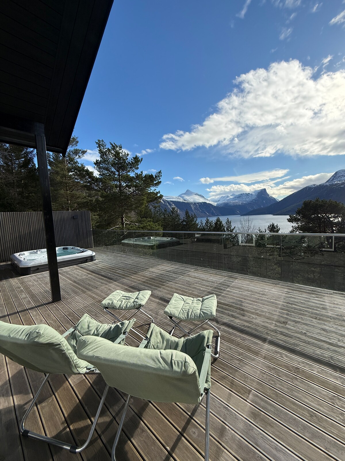 Spacious cabin at Skotten, just 3 km from the Atlantic Ocean Road, with a private property leading down to the sea. Enjoy a large veranda with multiple seating areas, a jacuzzi, and an indoor sauna. A perfect place to relax with family and friends. Great base for hiking, fishing, and swimming. Boat rental and activities like diving and sea rafting are available nearby. Fire pit, games, and toys included.