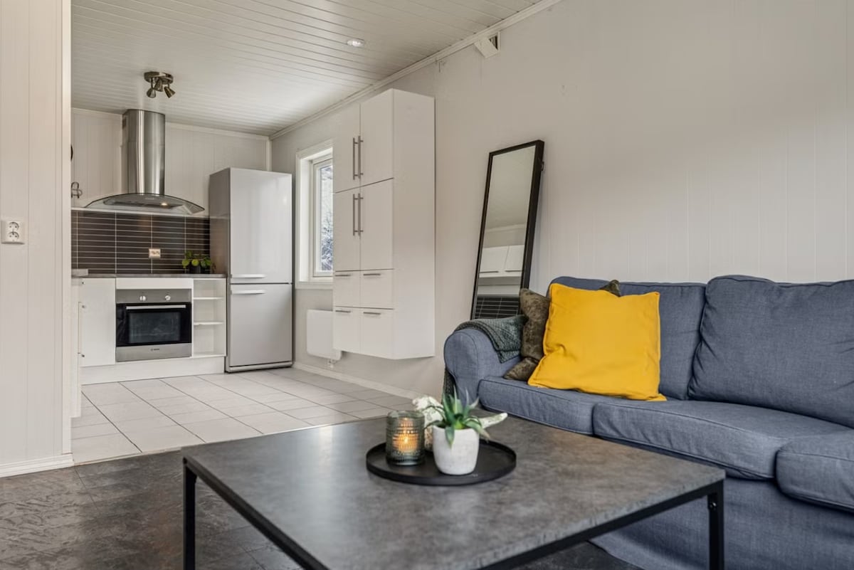 Start your next adventure in our picturesque 3-rooms rooftop apartment in the heart of the city. Here you’ll be greeted with incredible views over Kristiansund. It is fully equipped to be your home-away-from-home. The kitchen is fully equipped with appliances and all you need for coffee each morning! Enjoy your meals together around the dining room table, or relax in the comfy space includes a flatscreen TV. Private free 1 car parking is located behind the building. We hope to see YOU soon.