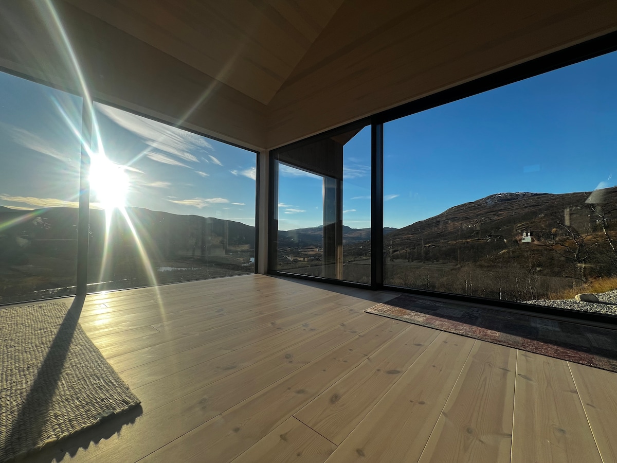 Our cabin was built in 2017. It lies sheltered at the top of the cabin area. From the sofa and dining area in the Livingroom you have a fantastic panoramic view to six of the local mountain tops which you can climb both winter and summer or just enjoy with a cup of hot chocolate from the comfort of the sofa. In the cabin you will find numerous games to enjoy with your family and friends either inside or outside