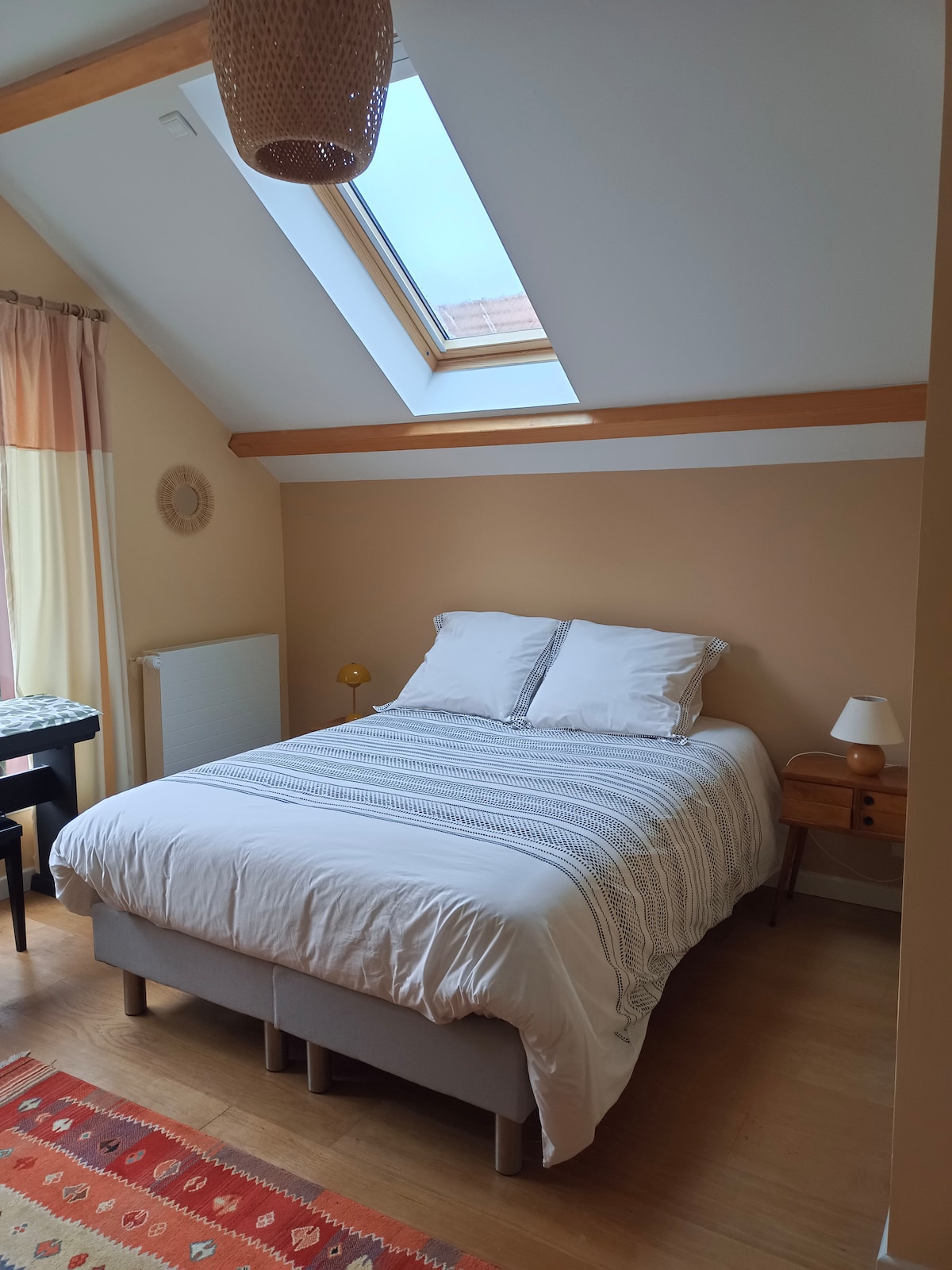 All the second floor is for the gests (55m²) : you can live in a place almost independant ... including 1 room with one double bed (or 2 individual beds) and private bathroom, and 1 artist studio transormed into livingroom with one bed for another guest (+ 50€).The bathroom is shared. Breakfast is served downstairs, in the morning at the requested time and is included in the price of the room. The hosts Erik and Dominique live on the second floor. There is also cas that live with them