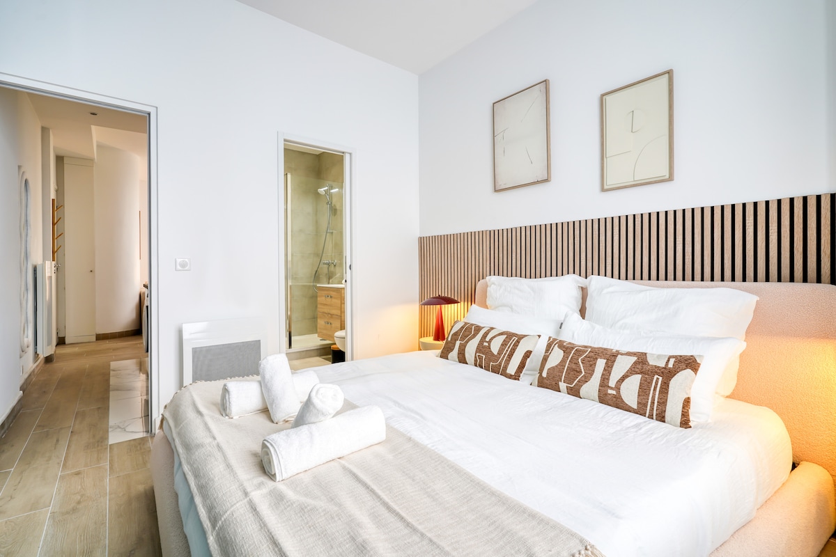 ✨ Suite de Luxe Paris avec Terrasse – 10 min Montparnasse | 15 min Champs-Élysées & Tour Eiffel Nichée au cœur de Paris, cette suite privative au style hôtelier pour 4 personnes allie élégance parisienne et confort moderne. Elle offre une chambre (lit King Size), un salon avec canapé-lit 150x200, une cuisine équipée et une grande terrasse privée. Décoration moderne et luxueuse, éclairage d’ambiance et 2 grandes TV pour une atmosphère chic et sophistiquée. Votre parenthèse de prestige à Paris