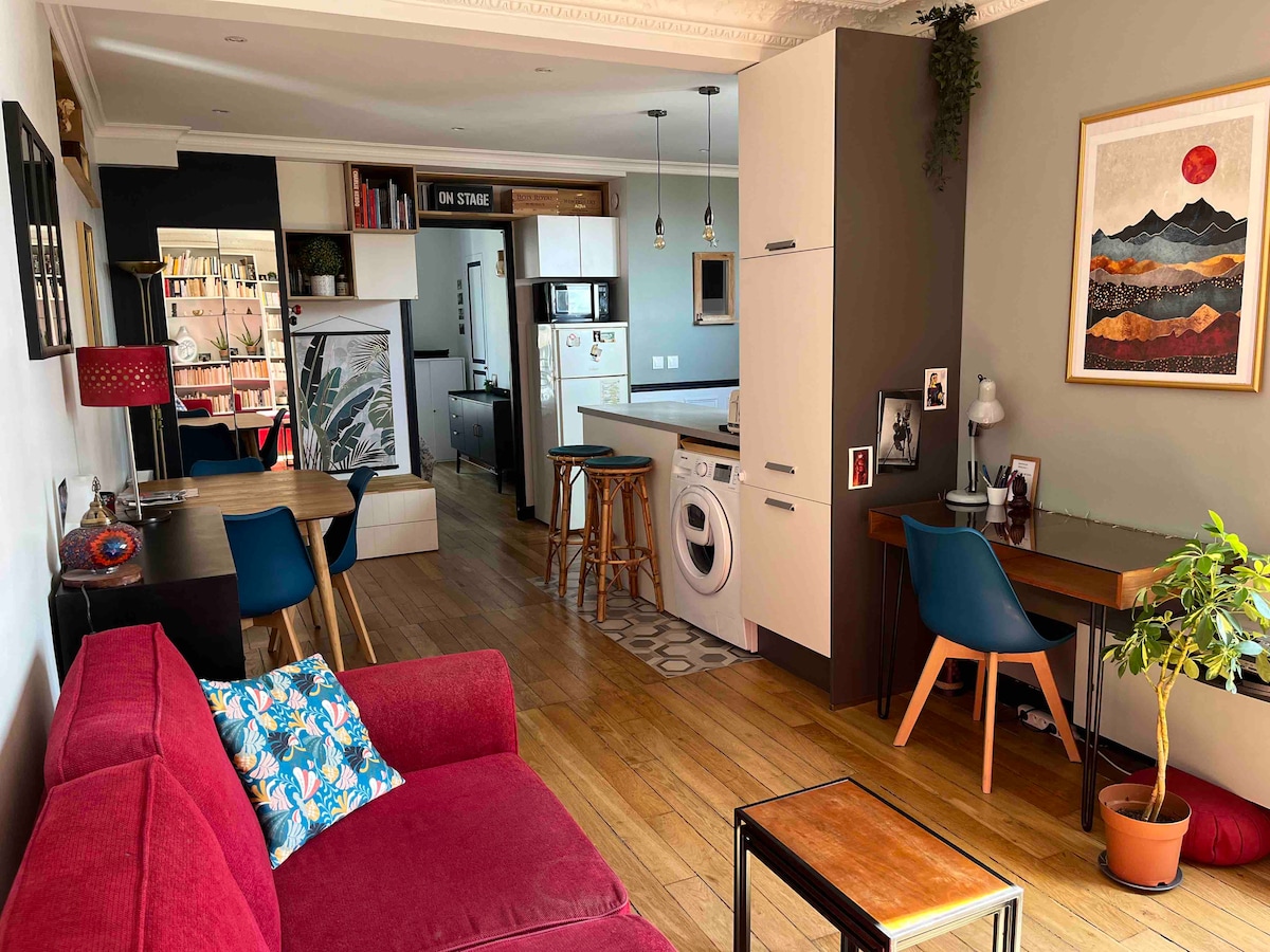 Cosy studio (27 sqm) in an lively and cosmopolite neighborhood located in the north center of Paris, in a building from 18th century. The place is quiet as the studio is on the courtyard side, on the 1st floor (2nd floor for US) Description : - living area with couch, - open kitchen - bed area - separate bathroom with large shower and toilet Towels are provided but not replaced during the stay Only one duvet/blanket is provided Body gel and shampoo not provided