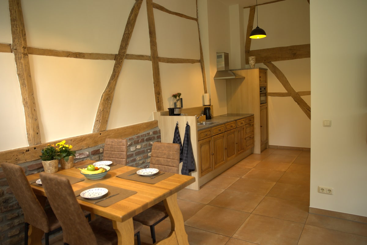 A Family or 2 couples will be comfortable in this spacious and unique space. It is the old baking house of the original farmhouse and even has an old well, now covered with glass, inside the downstairs bedroom. It is ideally situated in Oost-Maarland, 5km outside Maastricht, with the nr 15 bus stop 100m away. Perfect for runners, bikers, hikers, nature lovers and water sporters (the Maas and lake are 5min walk away). Free parking on property.