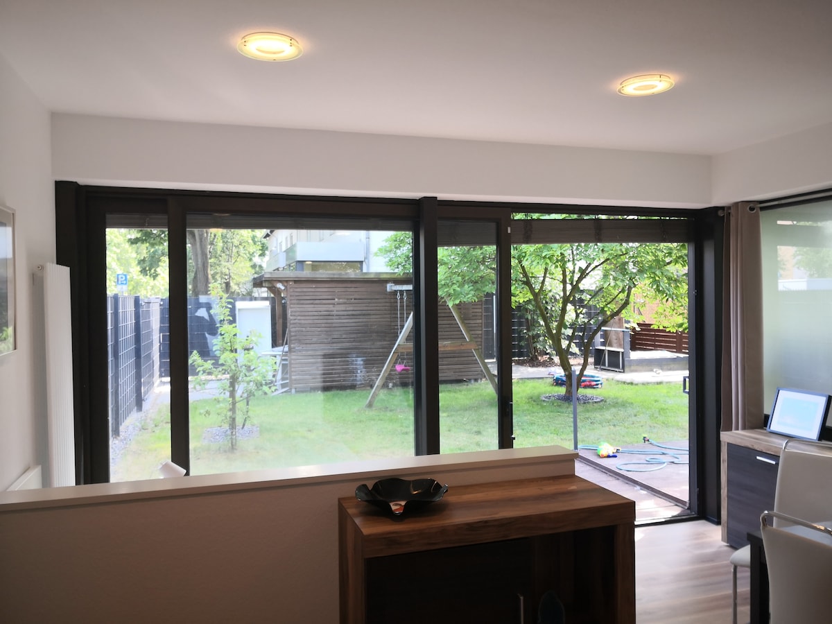 A beautiful 1.5 room flat awaits you. The flat is on the ground floor with a view of the forest. The surroundings are very quiet and ensure optimal relaxation. A 1.40 m wide box spring bed, a 160 cm wide sofa bed and a beautiful living room are at your disposal. There is a separate dressing room for your clothes. Within 8 minutes you can walk to the S-Bahn (suburban railway), which takes you to the main station within 5 minutes. The exhibition centre is 10 minutes away by car.
