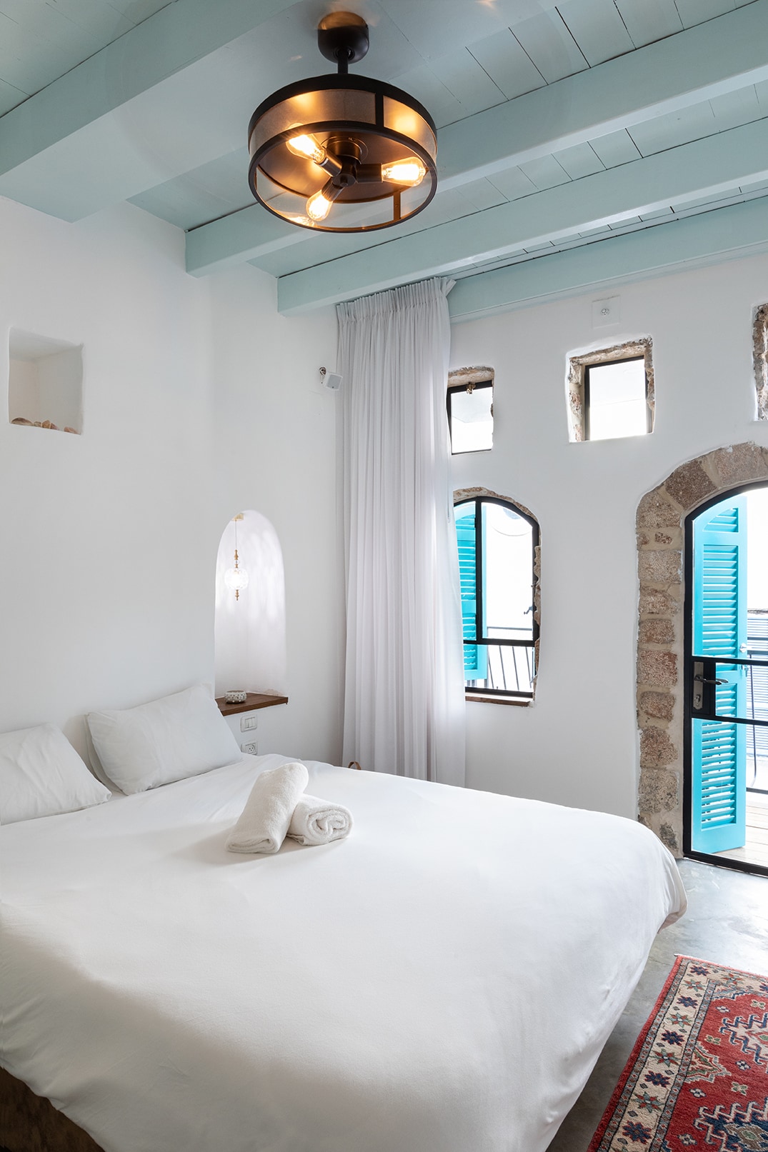 In the hart of the old city of Acre, romantic apartment, designed and beautiful. Features a kitchen equipped, coffee machine, with a luxurious holandia tempur bed, high level of bed linen and towels , a high quality stereo, cable TV and an Authentic balcony. Our suite has a shazlia view from the balcony. Israeli citizens must pay VAT 17%. locaten on first floor with staires.