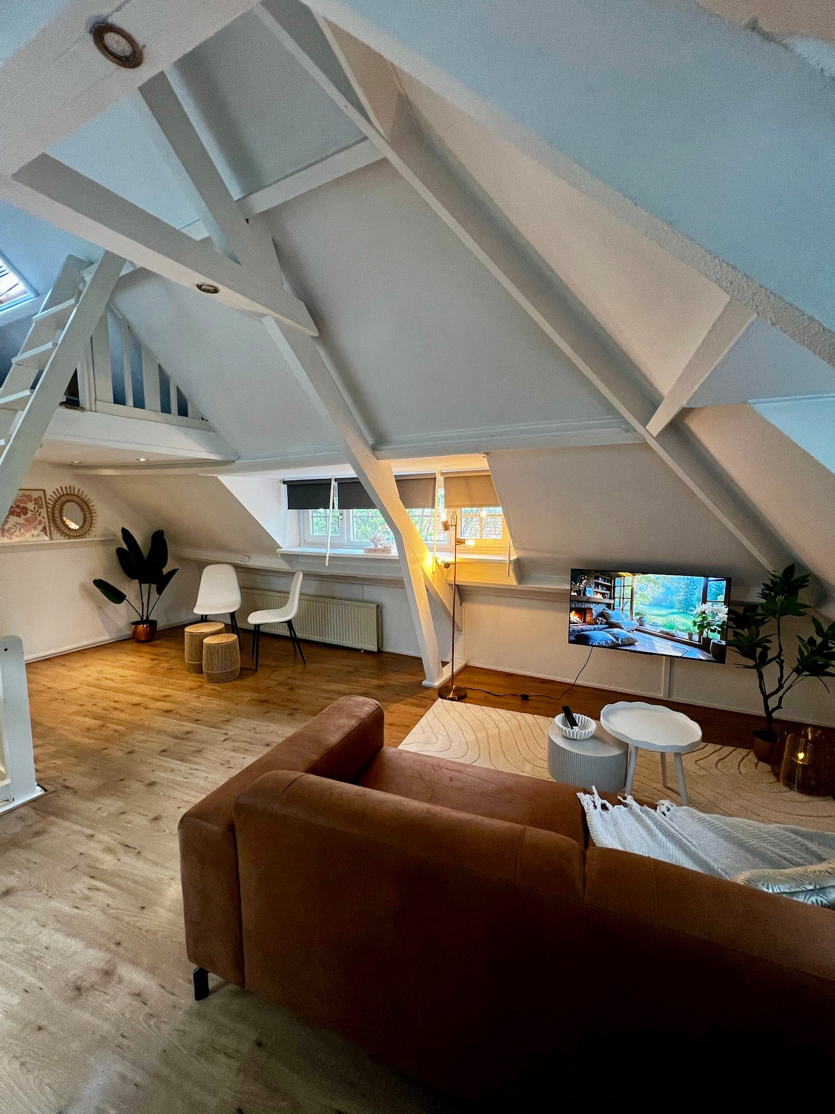 This trendy and well designed 45m2 penthouse is great located in the middle of Eindhoven City Centre! Completely renovated in 2020, the apartment is designed to make your stay as comfortable as possible. With a balcony and a sun-terrace, you will also enjoy beautiful views of the St. Catherine's Church. The bedroom has a Queen-sized bed and the living room features a quality sofa bed, to accommodate up to 4 people. It is an eco-friendly apartment, as sustainable products are being used.