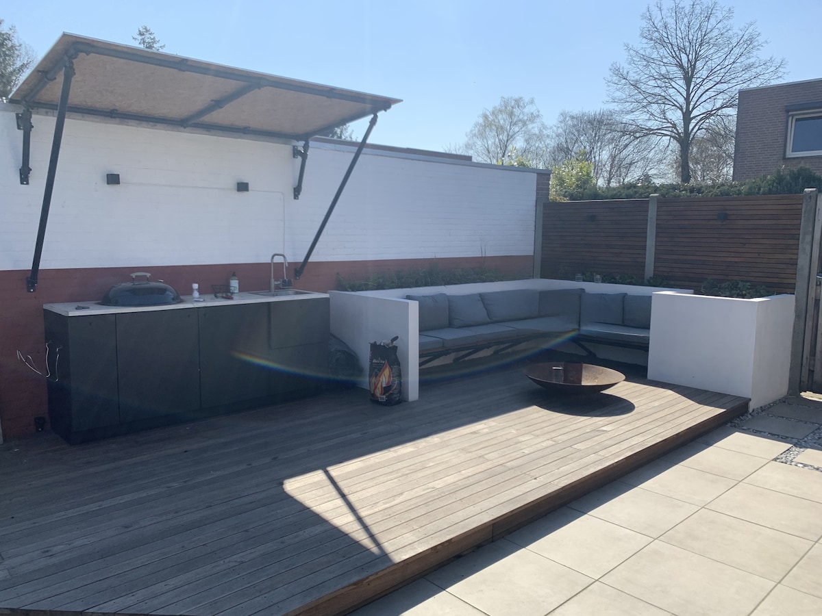 Stylist ground-floor bungalow with a private garden and a luxury kitchen island. Ideal for expats, short stays, city centre Tu/e visitors The bungalow is close to the city centre and creative Sectie-C area located in a quiet neighborhood. It includes everything you need, for instance a very bright living room in combination with an open, spacious kitchen, private garden, kingsize boxspring, fitnessroom and last but not least, a bubble bath.