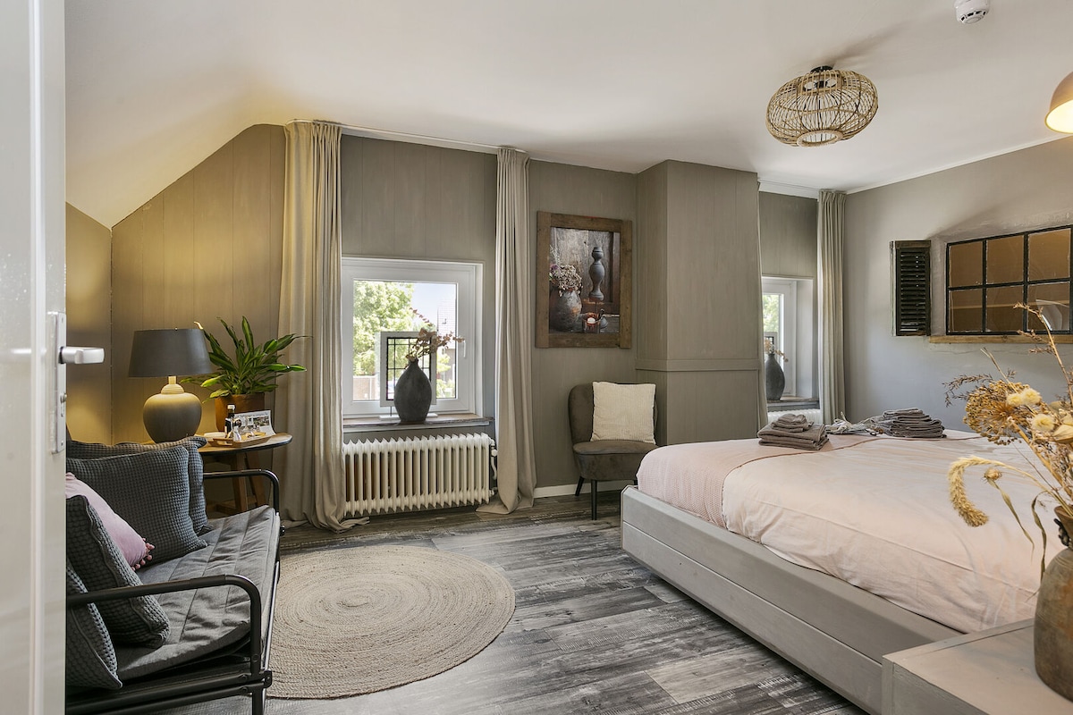 Experience the designer setting of this 151m2, 3BR 2Bath apartment, a part of the iconic Leerfabriek KVL in the very heart of Oisterwijk. Take in the area's historic architecture and diverse selection of shops and restaurants. After a day of exploring, return to our getaway that will mesmerize you with its luxuries. ✔ 3 spacious Bedrooms ✔ Open Design Living ✔ Full Kitchen ✔ Terrace + view ✔ High-Speed Wi-Fi ✔ Air Conditioning (2nd floor) ✔ Extra Service: Breakfast, Sauna, Gym See more below!