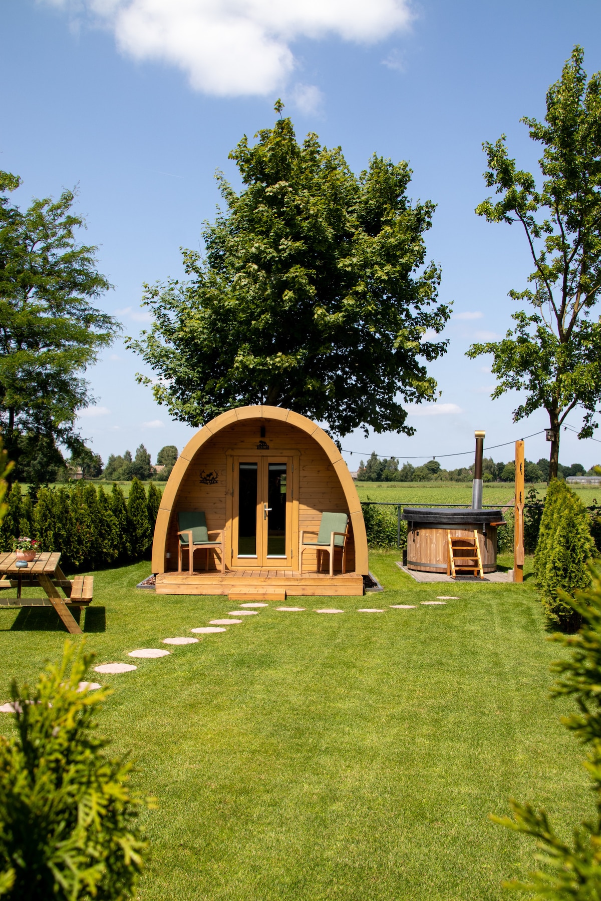 Peace, space, and a unique, romantic overnight stay in the beautiful countryside of Overloon, North Brabant. You are warmly welcome to our Cosy Cabin! The cabin is completely private, surrounded by farmland. Fancy a relaxing soak in the wood-fired hot tub during your stay? You can reserve it for €40 per night. We'll heat the hot tub before you arrive, and wood, bathrobes, and a delightful hot tub fragrance are included.