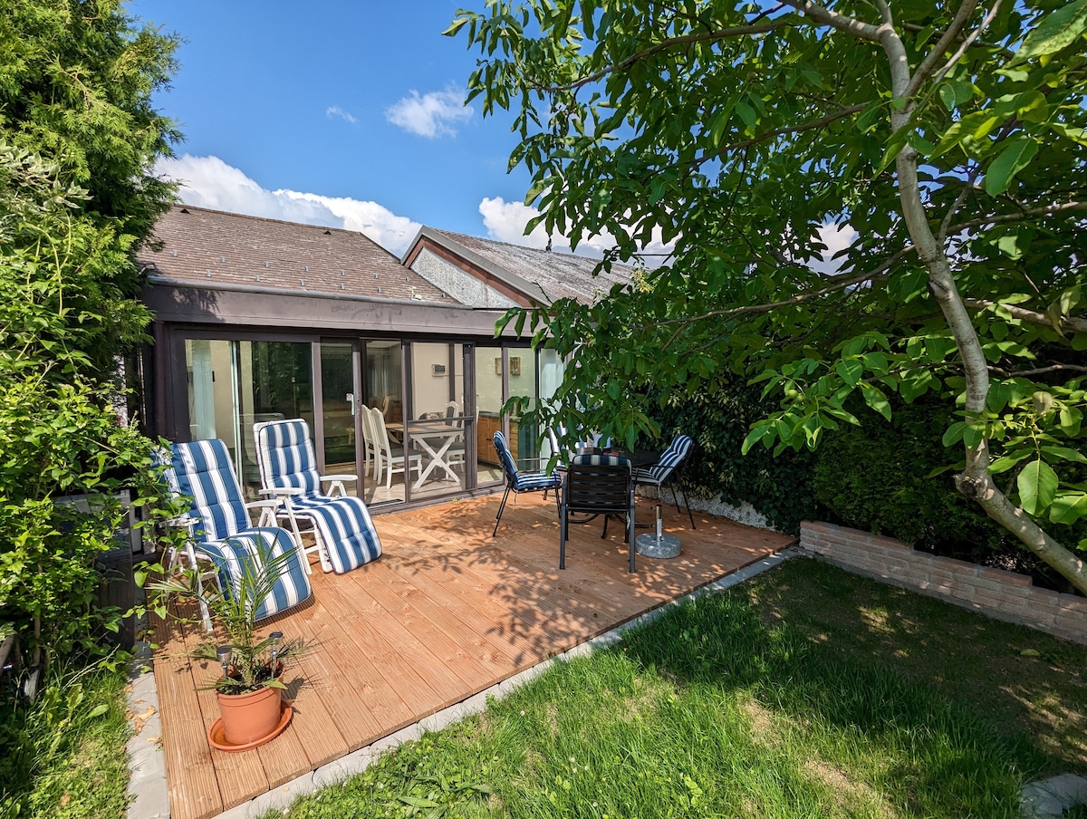 Du sitzt auf der Terasse, schaust über den Neusiedlersee und genießt ein kaltes Getränk auf der Sonnenterasse. Wenn du darauf Lust hast, bist du bei uns genau richtig! Das Wochenendhaus ist mit allem ausgestattet, was du dazu benötigst und einen Parkplatz gibt es auch. Das 2-stöckige Haus hat oben die Küche, Wohnzimmer und ein Gäste-WC und natürlich die Terasse. Im unteren Bereich gibt es 2 getrennte Schlafzimmer und Zugang zum Garten mit Sitzbereich unter der Terasse.