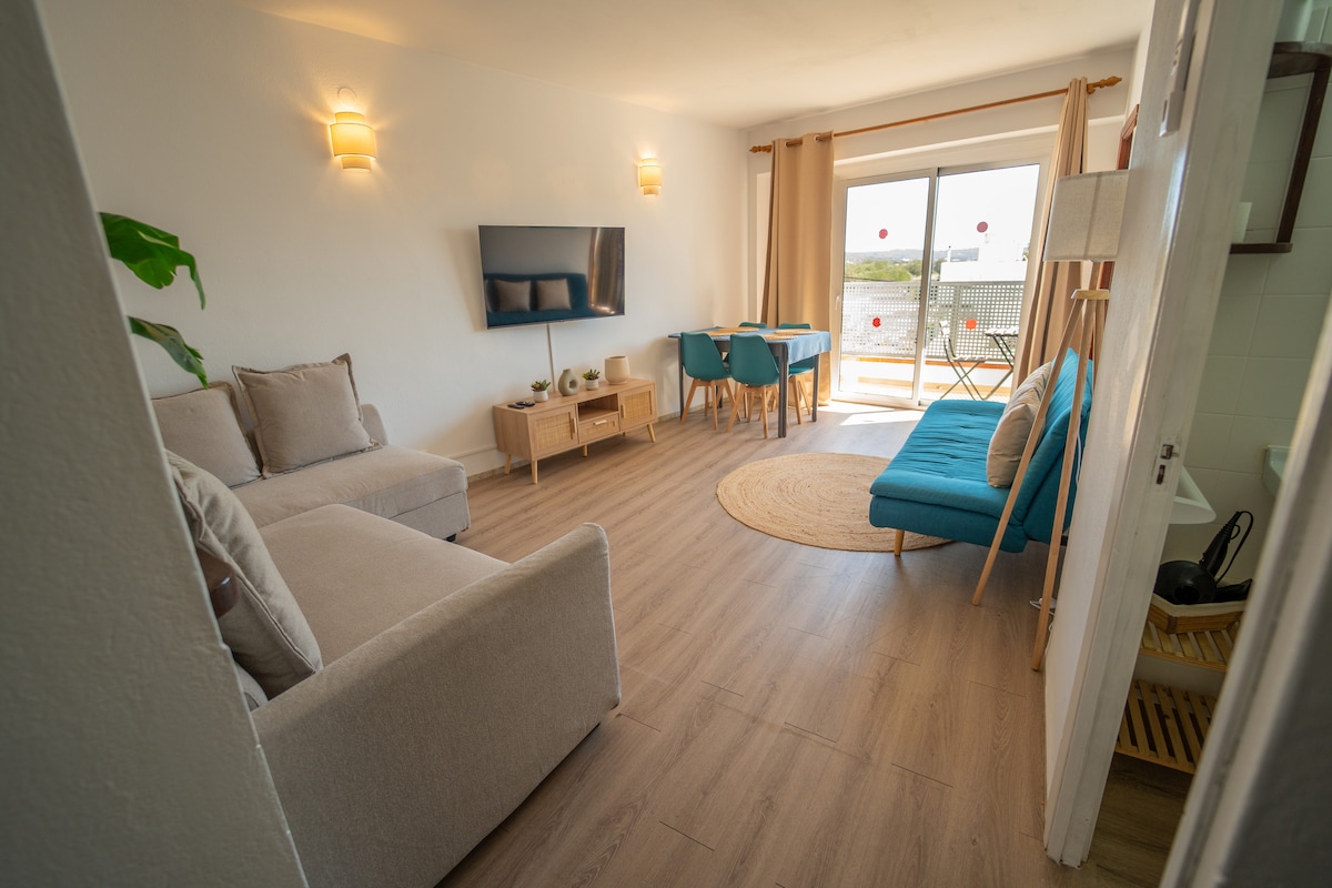 Sant Antoni Ibiza: Beaches & Comfort In the heart of Sant Antoni de Portmany, ideal base to explore Ibiza. Close to the sea, nightlife and the promenade, famous for the iconic sunsets of Café del Mar and Mambo •Top location: close to risto, bars and the bus station for Cala Comte/Bassa and the best beaches in Ibiza •Spaces: Double bedroom + 2 sofa beds (up to 5 guests). Fully equipped kitchen and washing machine •Comfort: 50” Smart TV, Wi-Fi and A/C •Self check-in: Simple, smart and fast