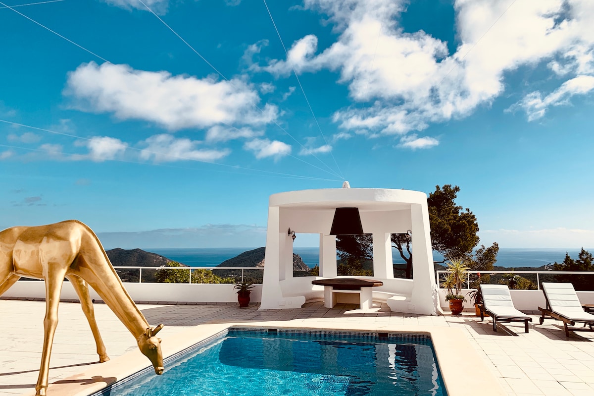 The villa is located near Can Furnet and Jesus, on top of a private mountain with best views you can imagine: from Mallorca, over to Cala Llonga to Formentera and Ibiza town. There are 5 bedrooms and 4 bathrooms + an independent apartment, ideal for big groups (ask for info), Dj decks and Funktion-One soundsystem included! The closest beaches as Talamanca and Cala Bonita, both within 10 minutes distance. Restaurants and bars, Supermarkets in 5 min. distance.