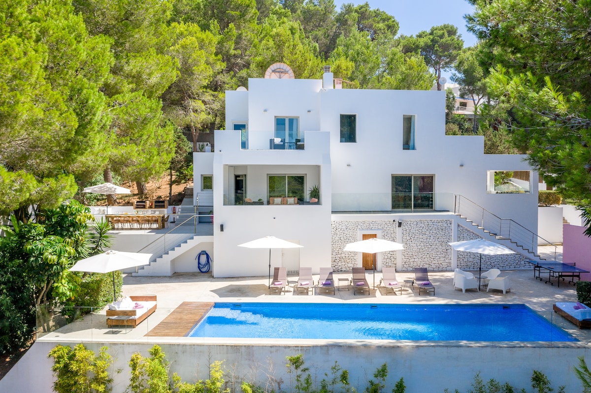 Peace and loneliness are sometimes so underrated every time we want to go on holidays and spend some time connecting with ourselves. Villa Luna, located in a town of Puig d'en Valls, on the South Coast of Ibiza, can be the perfect place to vanish your stress and heal your inner self from all the worries. Sounds great, right? Available to host 8 guests, our villa has 4 bedrooms and 3 bathrooms in a total space of 310 m2.