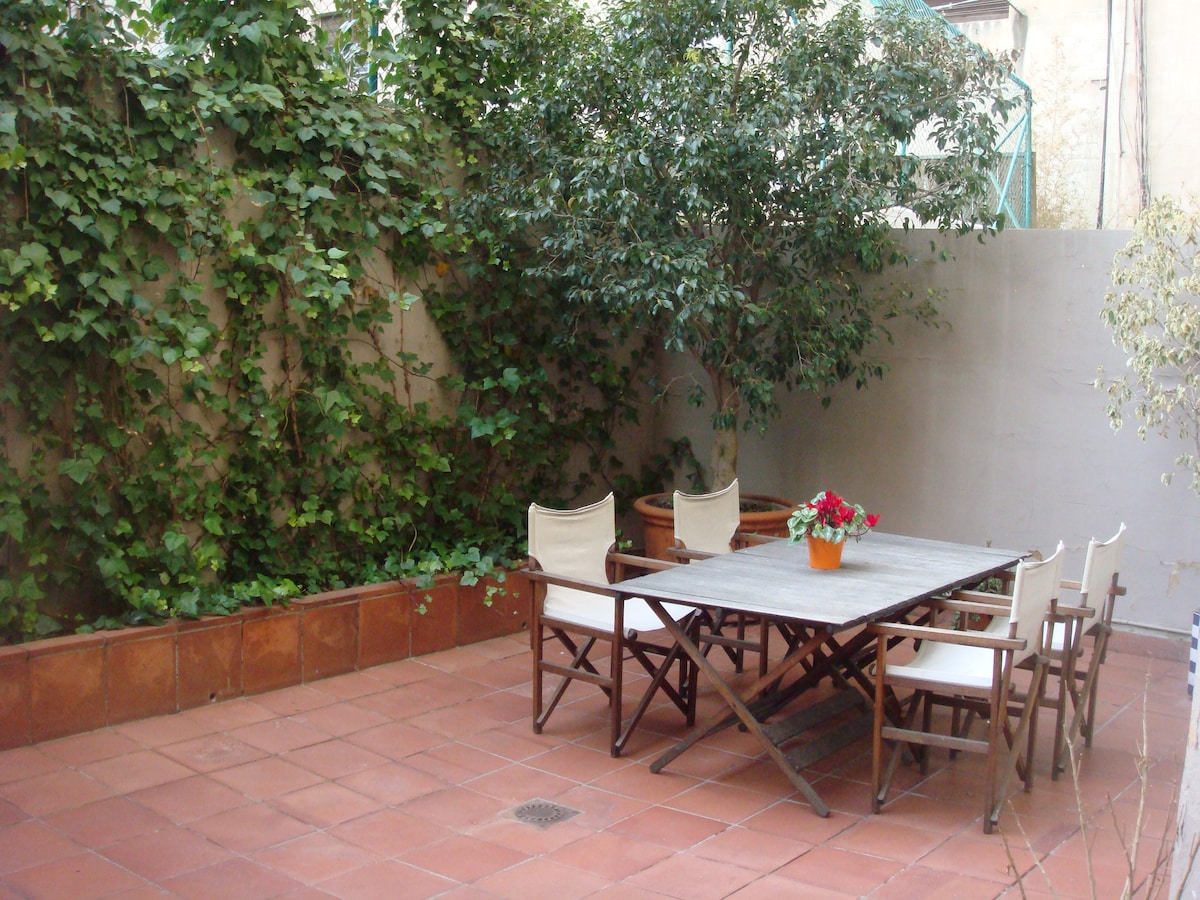 Completely refurbished apartment on the ground floor of a building, typical of Gràcia. Located in a quiet street but in the center of district. You can go all the little streets full of shops and bars and at some point be in their house with all the tranquility of a pedestrian street. Air conditioning. It has two double bedrooms, one of them with a loft and two single beds, two bathroom with shower, fully equipped kitchen, dining room and bar type salón. One terrace to take a good breakfast.