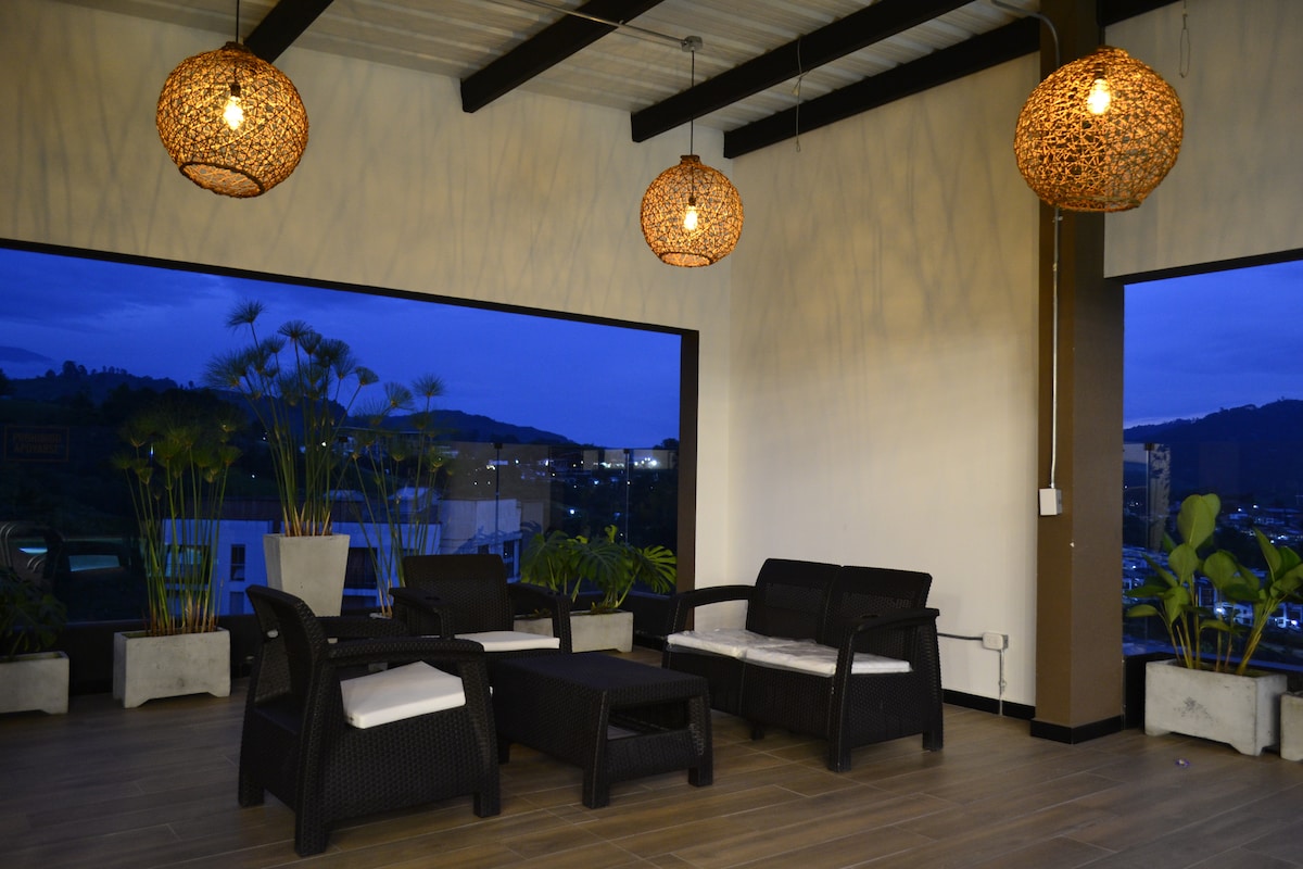 Disfruta de la mejor experiencia con un alojamiento elegante en un Piso 4 privado muy céntrico Totalmente legal, con seguro hotelero y todos los registros. Cerca a la zona turística los Termales. Encuentras electrodomésticos y una decoración vanguardista que te harán sentir muy cómodo. En sus alrededores cuenta con supermercados, restaurantes y zona rosa para que disfrutes de toda una estancia plena y sin preocupaciones. Cuenta con parqueadero privado totalmente cubierto para mayor seguridad