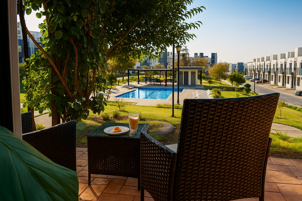 💵 Facturación Disponible 💵 🌿Refugio con estilo en Querétaro🌿 🛏️ 2 Recámaras | 2 Baños. ⭐Recámara principal Cama King baño privado. ✨Segunda recámara: Cama Queen 👶 Cuna disponible bajo solicitud Espacios Comunes 🎥 Sala de TV: Pantalla de 65" con acceso a streaming. 🍳 Cocina: Totalmente equipada para tu comodidad 🌿 Patio trasero: Tranquilo y acogedor, ideal para relajarse Amenidades 🏊 Alberca 💪 Gimnasio 🏀 Cancha de baloncesto 🎡 Área de juegos para niños ✨ Cosmos Homes Quality.