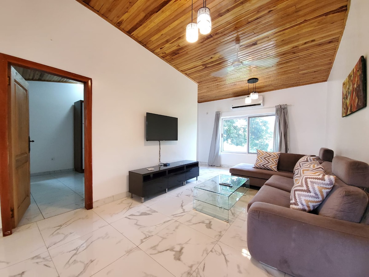 Have fun with the whole family at this serene stylish flat. This simple clean 3-bedroom suite in Kumasi, features a luxury 3 bathrooms, modern kumasi architecture, and prime location just 10 minutes from Kumasi Airport. Enjoy the convenience of private parking, free WiFi, a 55" Smart TV, and 3 smart TVs in all rooms, open kitchen and dining. With a backup power plant, professional team, and 24/7 strict security, your comfort is our priority.