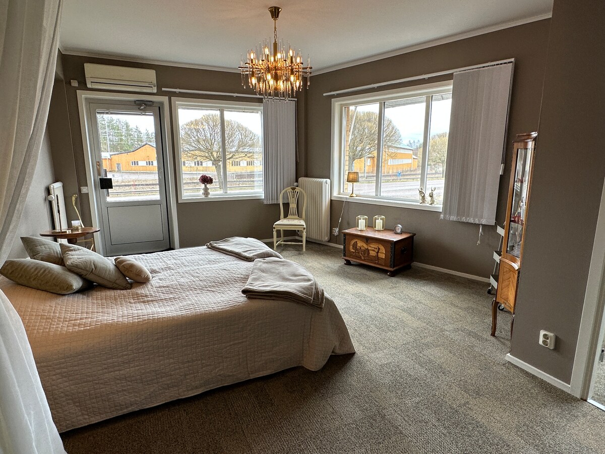 Centralt men fridfullt boende med hög standard. Mindre än 2 km till tågstation, flygplats och innerstaden. Ungefär 100 m till mataffär och 50m ner till gångvägen längs ån där du kan promenera in till restauranger och caféer. 75tums QLED tv med Cromecast, hemmabioljud, dockningsstation för Nintendo Switch och diverse streamingtjänster ingår.