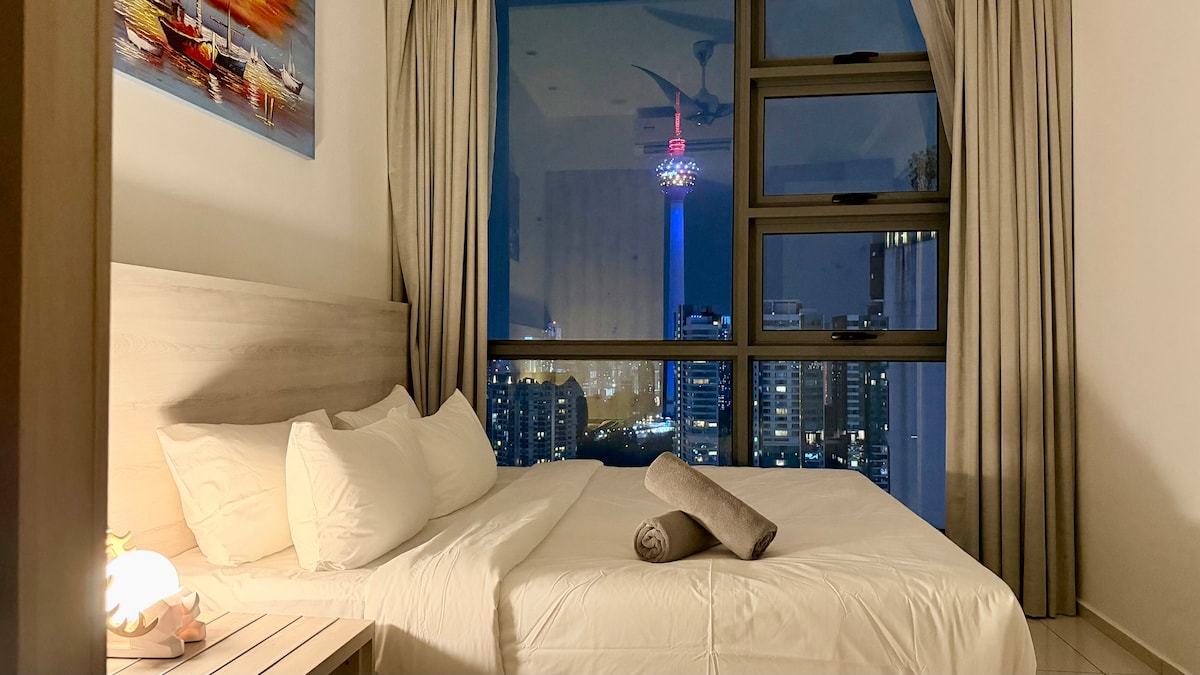 Why stay at Contemporary Suite at Lucentia Residence - the best views of KL - beautifully decorated with a fun spirit - centrally located - near public trans - fast wifi - 2 TVs with Netflix, Apple TV, Prime Video - 2 gorgeous pools - family friendly with baby crib & high chair - gym, pool table,BBQ pits, piano - garage parking - sleeps 3 max 5 - LalaPort Shopping Mall & the WOW entertainment street are attached - grocery, drug store, and many restaurants are attached - movie theatre GSC
