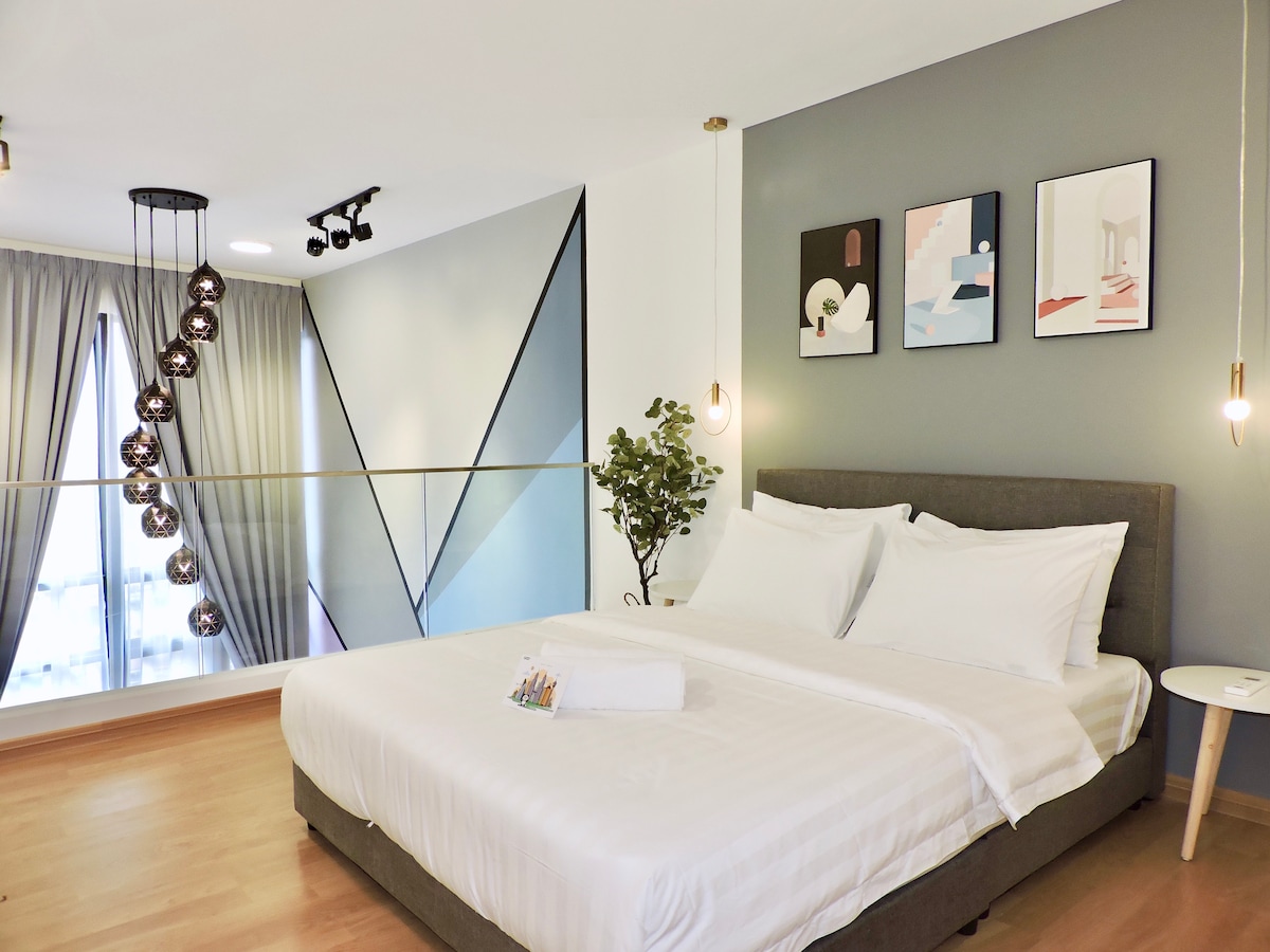 Our Grand Loft is packed with all sorts of amenities and facilities that you'll ever need! We are furnished with premium quality furnitures , entertainment unit (Karaoke) and exquisite finishing that gives not only more value but also your experience staying here. We are located just 15 minutes away from the CBD, 5 stops away from Bukit Bintang (Pavillion) & 6 stops away from KLCC by train. We are strategically located with a 4 minutes covered walk through the mall to the MRT station at lv 1