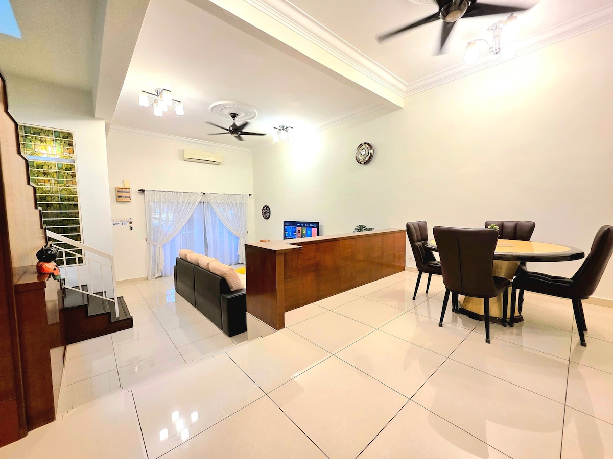 This is s a double storey landed house located in Taman Mutiara Cheras Kuala Lumpur with 4 bedrooms, 3 bathrooms, dining room, kitchen and living hall that can accommodate up to 16 guests. The car porch can fit 4 cars. This house is located nearby Tmn Mutiara MRT station/Ekocheras & Leisure Mall/convenience stores & restaurant (3 min. walk). Strictly no wedding ceremony/party/buffet/catering/BBQ/event/video or film shooting in this house. This house is only meant for stay or small gathering.