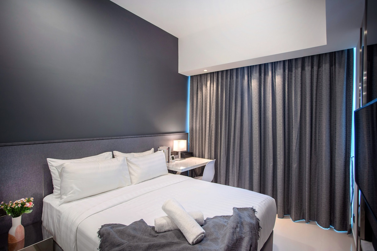 Scarletz Suites is a luxury serviced apartment located in Kuala Lumpur, Malaysia, developed by Exsim. Its designed for long-term & short-term stays, suitable for business & leisure travelers, fully furnished & equipped with modern amenities such as kitchenette, living room & private bathroom. It has swimming pool, gym & a 24-hour security service. Located in a prime area, providing easy access to the city's major shopping, dining and entertainment destinations, near KLCC & Petronas Twin Tower.