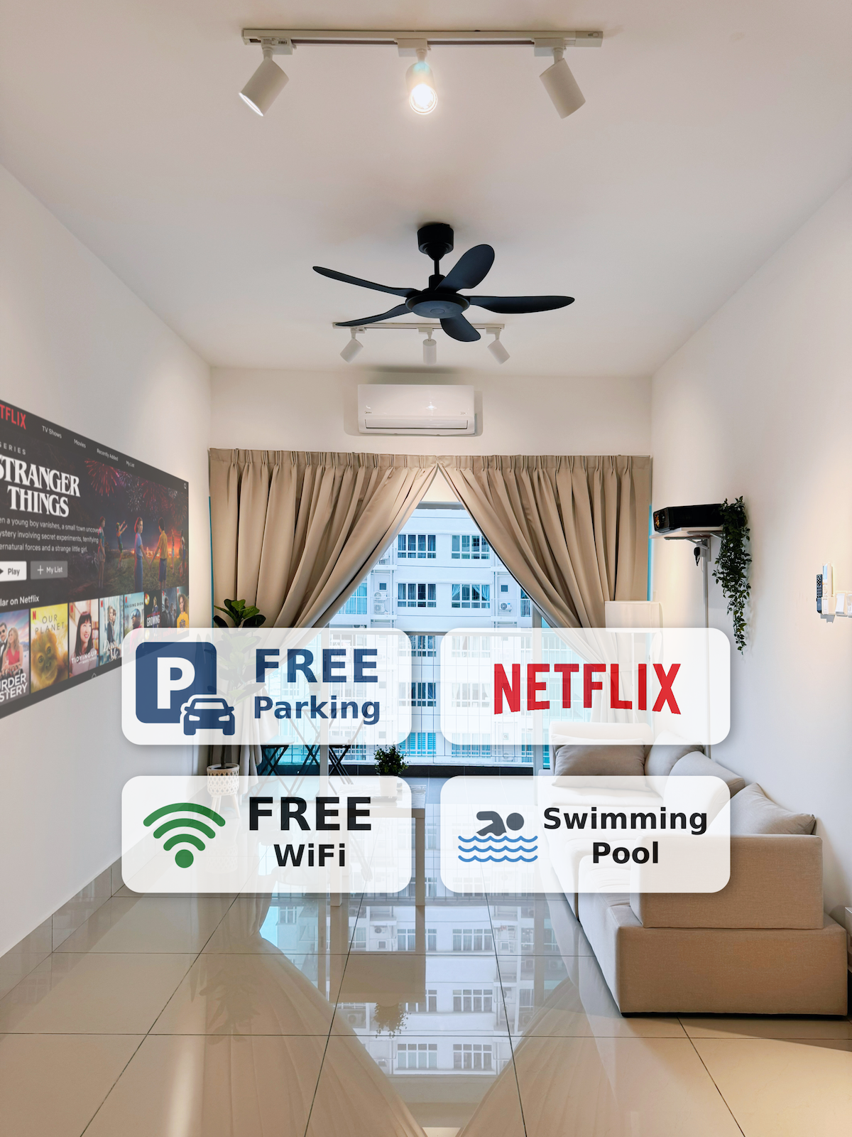Modern, cozy unit in Eko Cheras! Perfect for travelers seeking comfort & convenience. Enjoy a fully equipped kitchen, high-speed WiFi, & comfy beds. Steps away from shops, eateries, & public transport. Relax by the pool or explore nearby attractions. Ideal for couples, families, or solo adventurers. Book now for a hassle-free stay!
