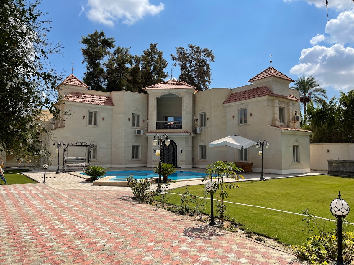 Luxurious villa in King Mariout, located in an exclusive neighborhood. Newly furnished and fully air-conditioned, it features 5 spacious bedrooms, 7 bathrooms, a large private pool, and a big garden. The villa accommodates up to 10 guests across 500 square meters. High security with outdoor cameras ensures privacy and safety. Ideal for a relaxing family getaway.
