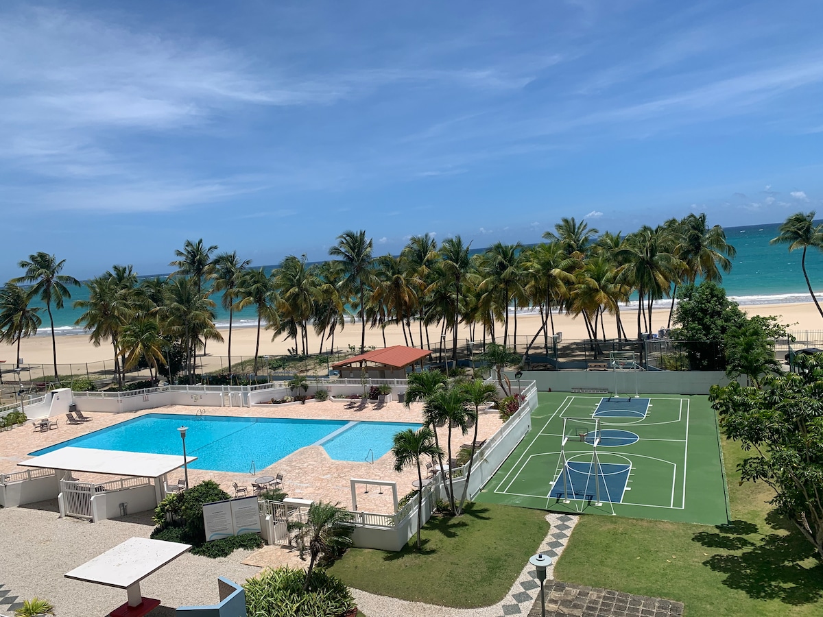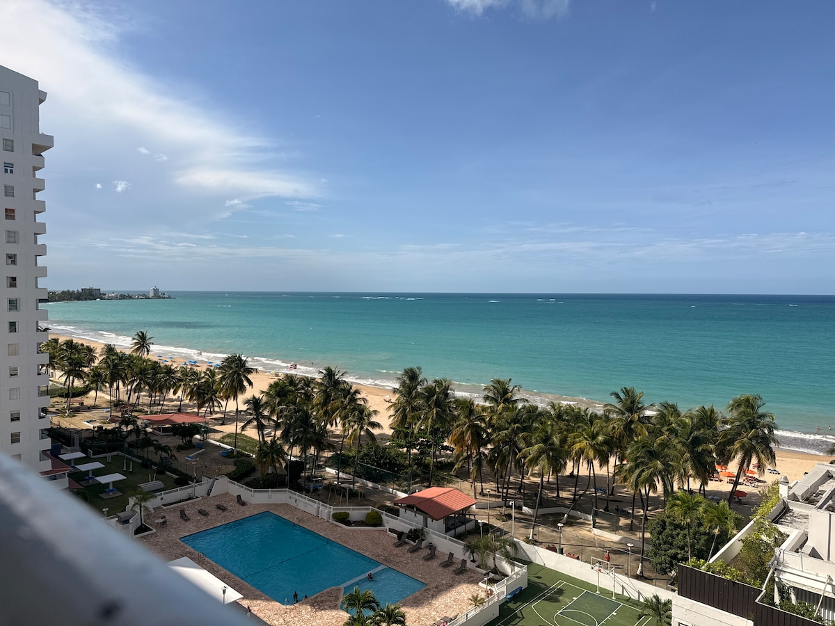 Hi. Looking for a beachfront apartment? Look no further! This is a beachfront 1 bedroom apartment that sleeps 2 in the best beach in San Juan! 15min from Old San Juan, 7min from the Airport, near shops, restaurants, hotels, casinos, nightlife, and a vibrant walking district. Hear the ocean waves, feel the breeze, enjoy the sun! The building has a private beach entrance, basketball court, tennis court (currently closed), pool, gazebos, bbq area, and more! Welcome to the Island Living experience!