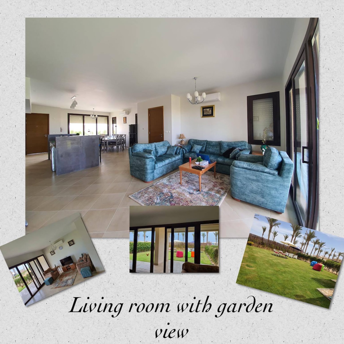 Luxury & spacious modern villa in Marassi with private garden for beach lovers. 3 mins walk to the lakes and swimming pool, 10 mins walk to a wide variety of restaurants & cafes, supermarket and Marassi shops, and 15 mins walk to the beach in the best spot in the North Coast on the Mediterranean Sea with shuttle buses available every 15-30 mins.