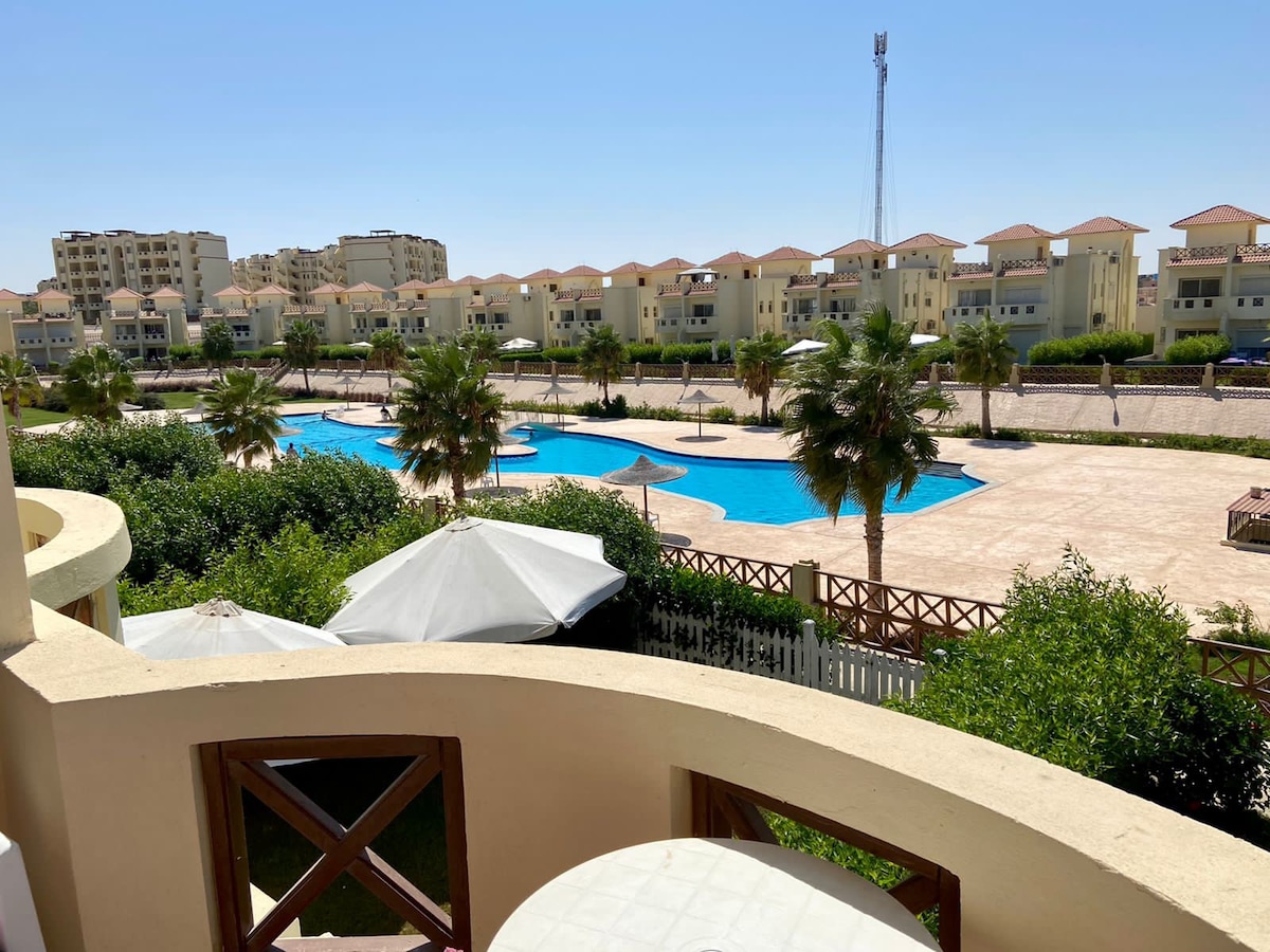 Villa with private garden in the front of extra large pool , 2 min walks to beach. -Air conditioning - Four rooms , 3 bathrooms ,1 outdoor shower. - Total Six beds , two king size beds , four single beds ,Two sofa beds - Kitchen fully equipped (oven , cooker, microwave, fridge, washer, water dispenser, mixer, dishes ,cooking pots). - three days minimum reservation. - Stell Heights resort provides Grocery Shop , bikes , jet ski,soap soccer, beach volley,animation , fast food shops, nigth club.