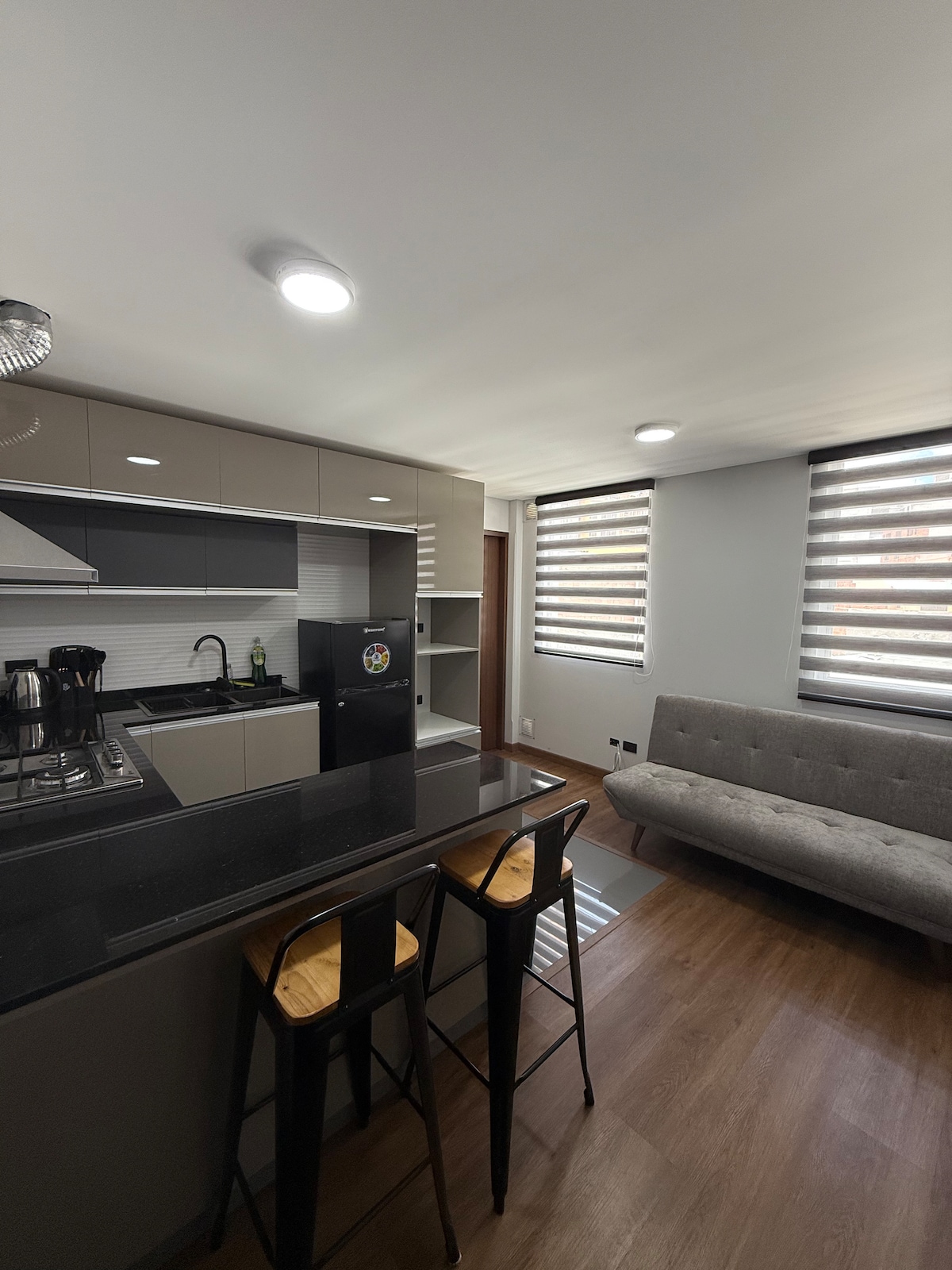 Este moderno loft está ubicado en el centro de La Paz, a solo una cuadra de la cultural calle Sagarnaga. Con una cocina totalmente equipada, una cómoda cama de dos plazas, TV Smart de 43 pulgadas e internet de alta velocidad, ofrece todo lo necesario para una estancia cómoda y conectada. Ideal para quienes buscan disfrutar de la ciudad con estilo y comodidad. ¡Tu hogar en el corazón de La Paz te espera!