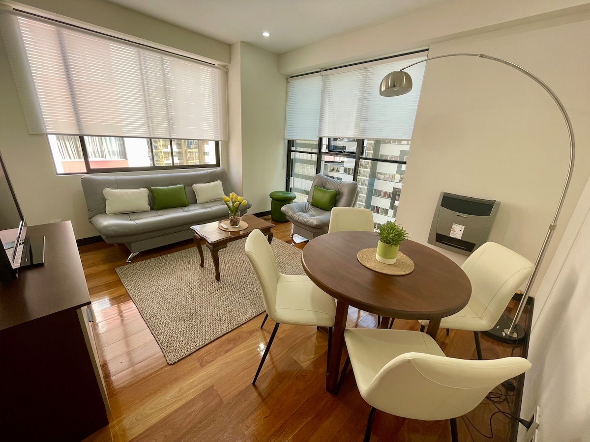 One bedroom apartment with private terrace in Sopocachi. Enjoy a unique stay in this beautiful private one bedroom apartment, designed to offer you comfort, warmth and tranquility. Located in Sopocachi, one of the safest and most central areas of La Paz, you will be surrounded by cafes, restaurants, bars and art galleries, with easy access to public transportation and only two blocks from Plaza Avaroa and Plaza España.