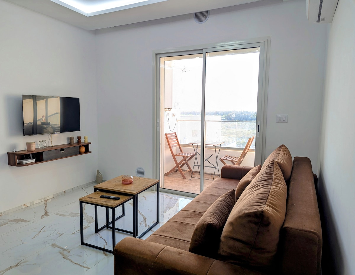 Détendez vous dans ce logement calme et cosy, luxueusement équipé et avec un décor harmonieux assurant un séjour agréable. L’appartement est situé dans une zone résidentielle calme, comprend un salon avec un canapé-lit , une chambre à coucher avec balcon et une Kitchenette bien équipée. 📍Niché à proximité de toutes les commodités: Carrefour, restaurants, cafés, lounges, salle de sport, pharmacie… L’aéroport de Tunis Carthage est à 5 minutes.