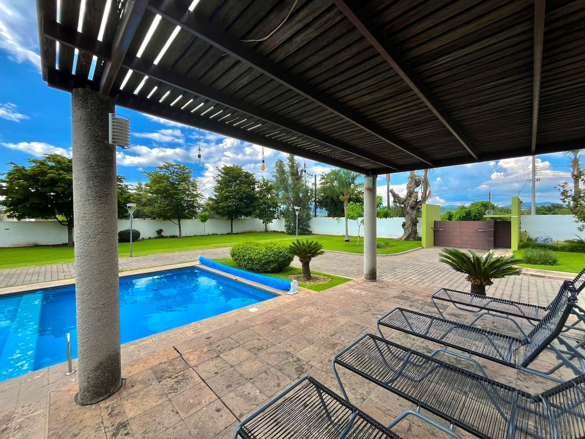 MAXIMO 25 PERSONAS NO MASCOTAS, NO EVENTOS, NO SET DE FOTOGRAFÍA SOLO CASA DE DESCANSO NO ES TERRAZA DE EVENTOS NO PUEDES DEJARLA SUCIA, SE ENTREGA TAL CUAL SE RECIBE DE LO CONTRARIO APLICAN CARGOS EXTRA 50 DLLS Aprovecha la oportunidad de estar en esta magnífica casa de campo de lujo tipo hacienda, acondicionada para pasar momentos de relajación y entretenimiento con familia y amigos cercanos en más de 5000 m2 de terreno Dentro de fraccionamiento privado/vigilancia 24 hrs A solo 30 min de gdl