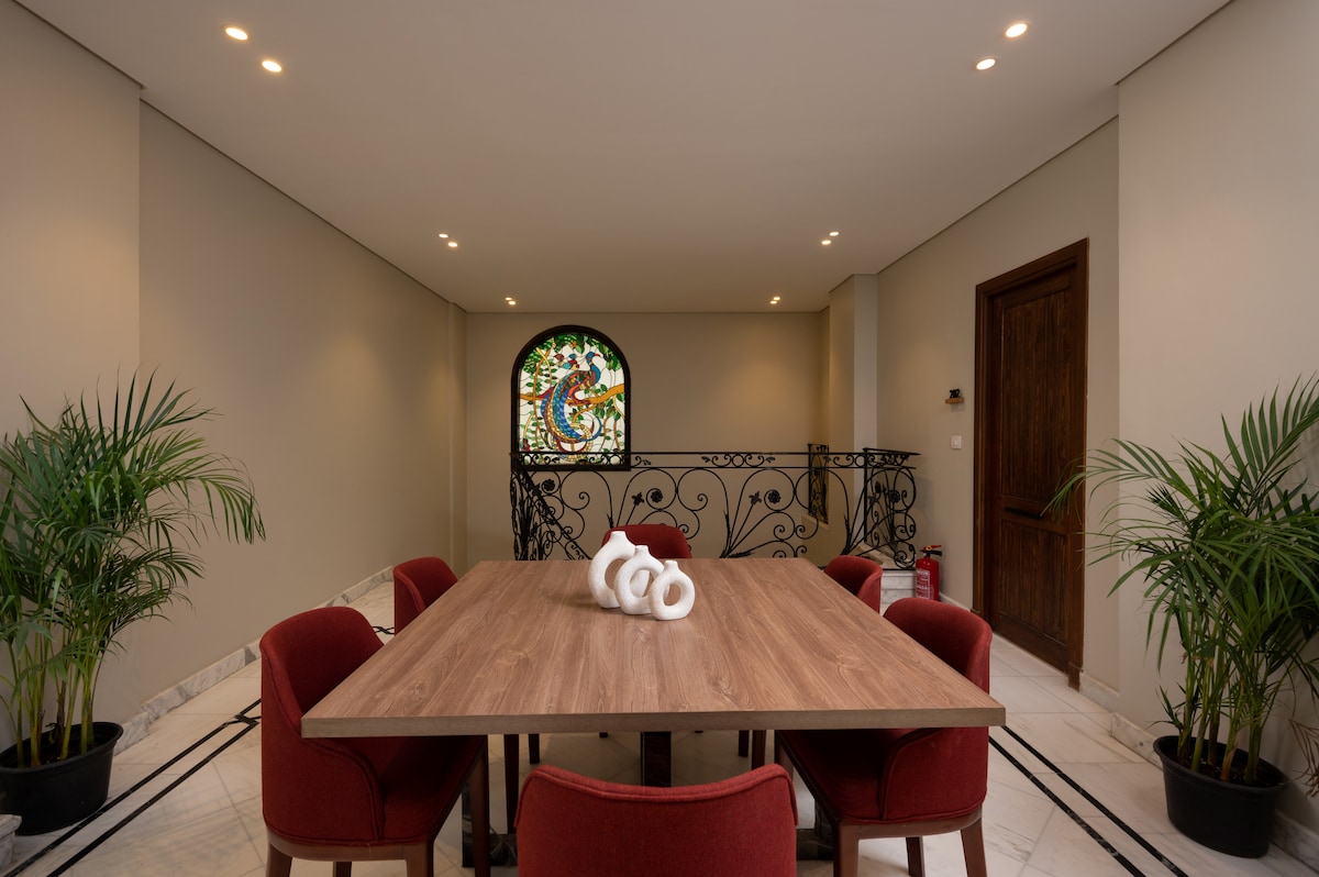 Welcome to our 3-bed, 3-bath, 220 sqm Maadi gem! Enjoy open views, a fully equipped kitchen, a 55" Smart TV, and lightning-fast Wi-Fi. Conveniently located near shops and restaurants, Carrefour and 50 Hub Mall are just 2 minutes away. Explore Maadi's charm and Cairo's attractions from this stylish and central retreat. Perfect for families or groups exploring Cairo's vibrant scene. No single male guests allowed. Ladies, Couples & Families only.