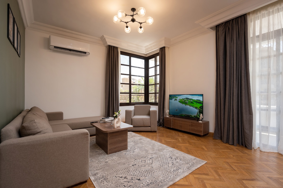 Come stay at our newly renovated 3 bedroom/2.5 bathroom home with its: - Fully equipped kitchen -Thoughtfully designed bedrooms - Living room equipped with 55" smart TV - Working space in a separate room - WIFI & airconditioned all around In the heart of Maadi, one of the best neighbourhoods and central within Cairo. Nearby everything that Maadi has to offer. Exploring the rest of Cairo will be effortless as any of the attractions within 30-40 minutes ride and for less than 4 USD using Uber!
