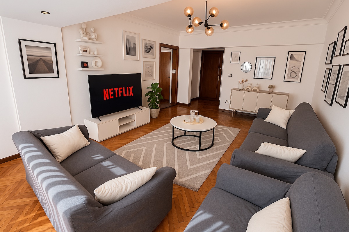 Comfort Plaza A - Prime location in Cairo, close to all amenities and services - Fully air-conditioned apartment - Hot water available throughout the apartment - Stunning view from the balcony - Fully equipped kitchen for all your needs - Master bedroom with private bathroom for ultimate comfort and privacy - Free Wi-Fi throughout the apartment - Flat-screen TV in the living room - Additional bathroom for guests